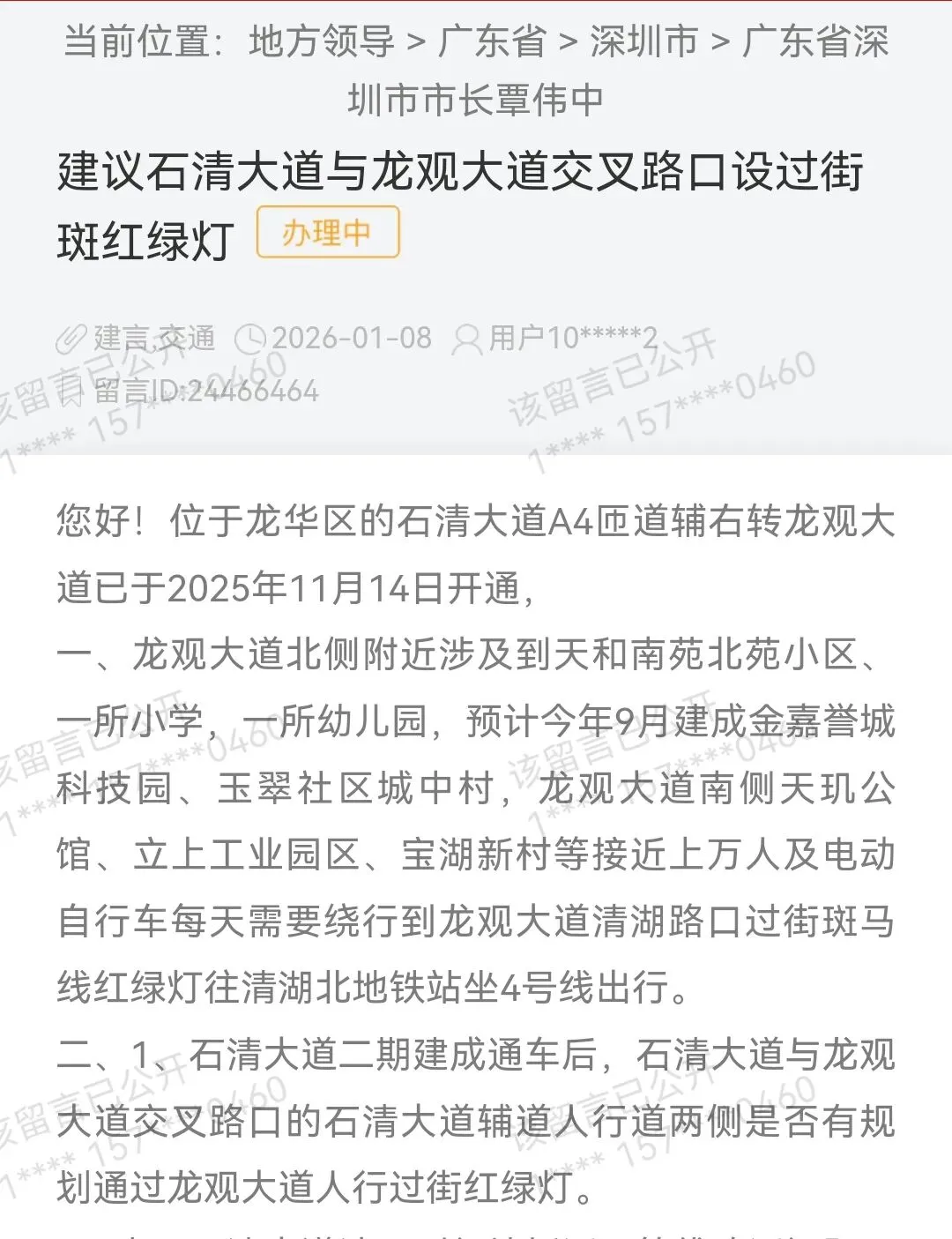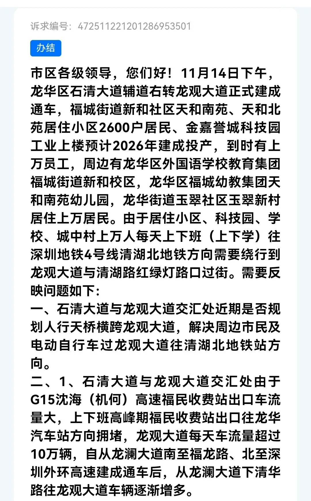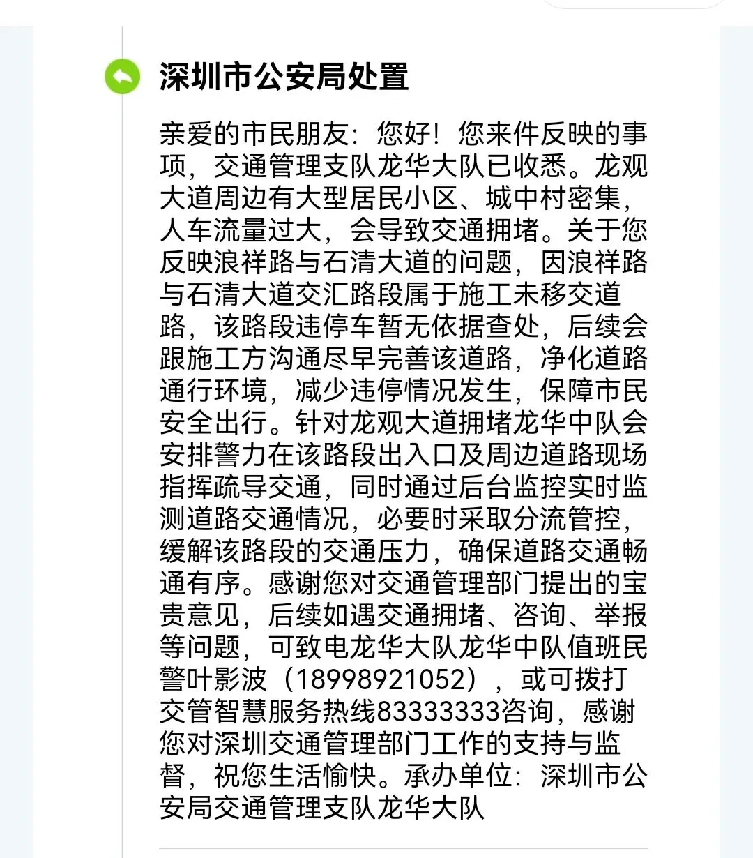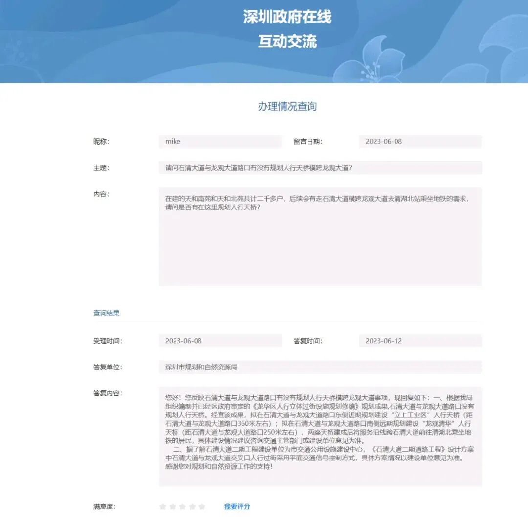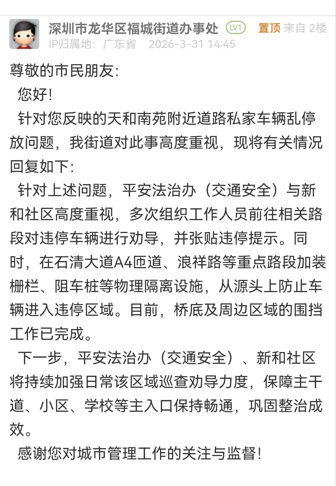 2026年3月31日,深圳市龙华区福城街道办事处回复: