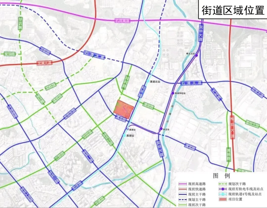 全面调整片区交通组织,对龙观路与石清大道交叉口实行管道化通行,增加龙观路沿线左转灯控路口,清华路(支路)实行单向通行。