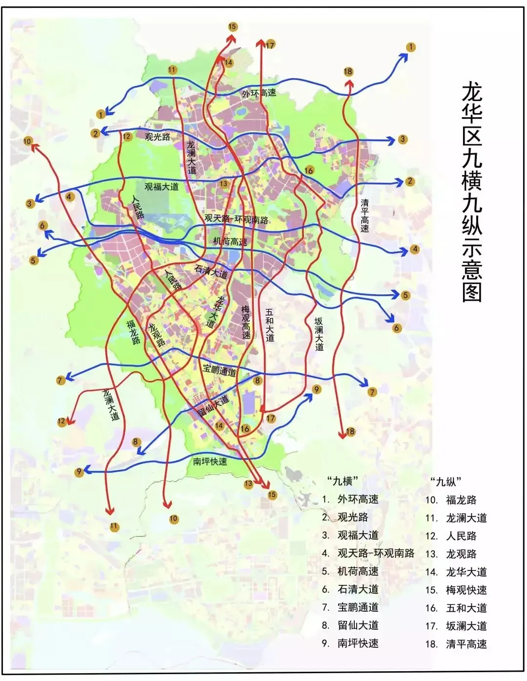 根据机荷高速改扩建工可,与观澜大道不再设置互通立交,对现状福民立交进行移位新建,衔接龙澜大道(深华快速路)。
