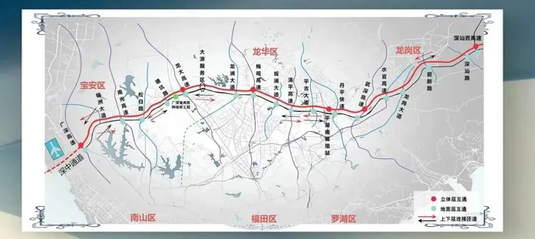 该工程与规划的宝鹏通道、沙河东路北延道路、北环大道立交、滨海大道衔接,可串联深圳湾超级总部、车公庙、安托山、西丽湖国际科教城以及龙华北部等多个重点片区,是深圳市重点交通基础设施项目。