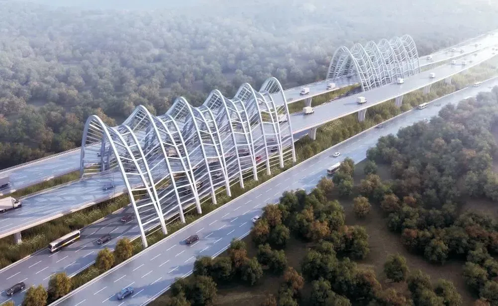 作为“十四五”规划的交通运输重大工程项目,该工程采用地面层+立体层复合通道模式两层双向8+8车道高速公路标准进行改扩建。