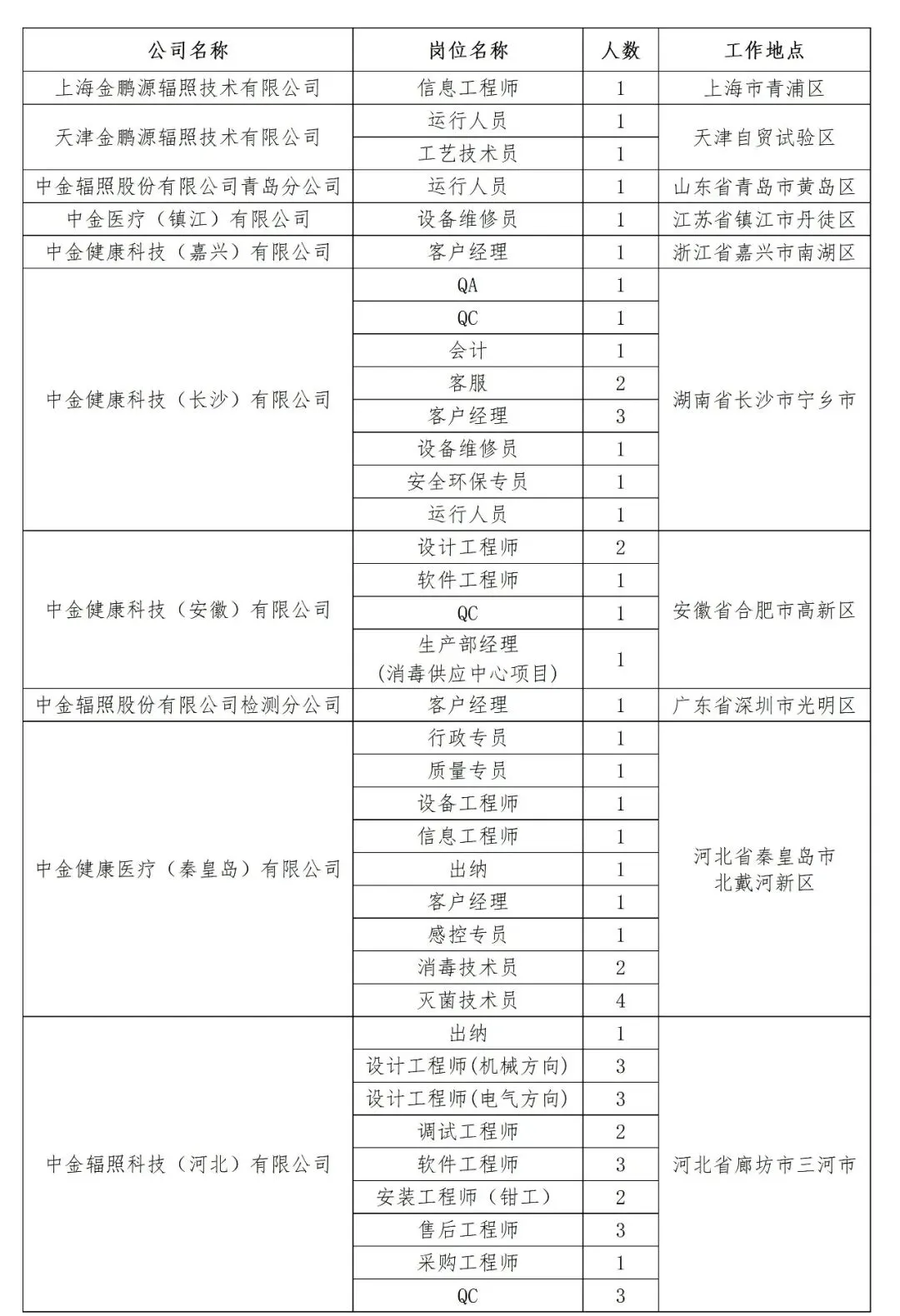 简历请投递到微信服务号“中国黄金招聘”-“社会招聘”或“校园招聘”-“招聘公司”-“中金辐照股份有限公司”(含所属企业)相关岗位邮箱:wangyx@chinagoldgroup.com网站报名(见文中)