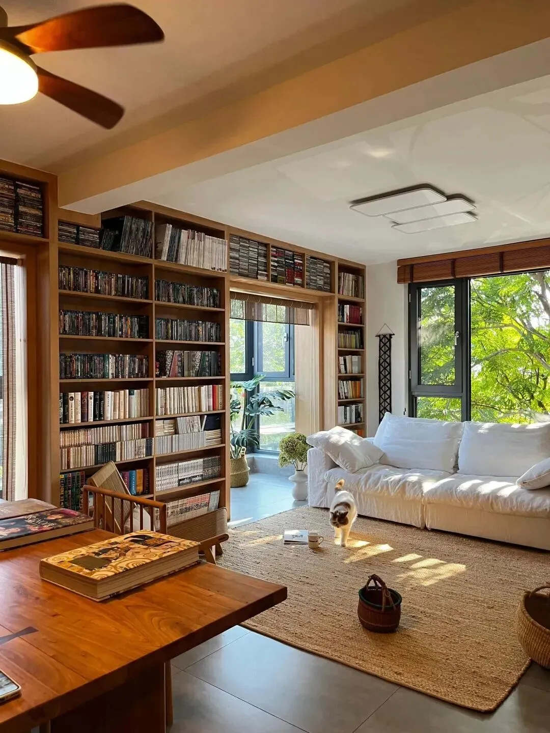 我认识一个深圳的女生,房子不大,但她家那个书房角落,别提多治愈了。你一进门,满墙的书柜,白色的大沙发,阳光透过绿叶洒进来,那叫一个温暖。啥高档设计都比不上这种自然的安稳感。你看那原木色的桌子,老物件儿淘回来的,越用越有味儿,心里不自觉就踏实下来。