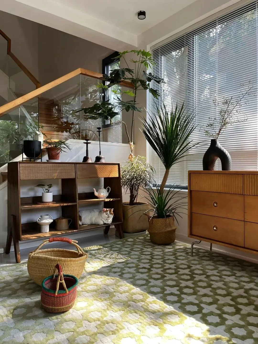 尤其是有宠物的家庭,别怕毛孩子弄乱沙发、地毯。你看,她家猫咪最喜欢的地方,就是那沙发上一小块阳光。连猫都能挑出最舒服的角落,这说明家本身就有治愈力。只要你舍得用心去经营,家一定会回馈你最温柔的安慰。
