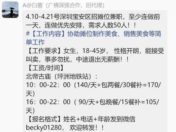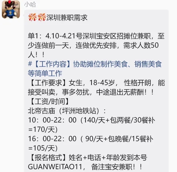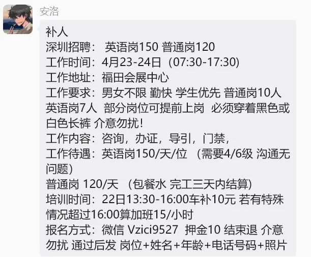 深圳兼职丨活动兼职210元丨安保兼职180元丨餐饮兼职180元;欢迎扫码加入粉丝群!