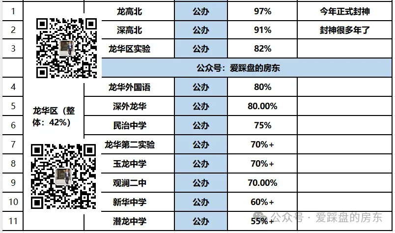 从整体公办普高率来看,龙华已经超越罗湖,登上深圳第三的位置。