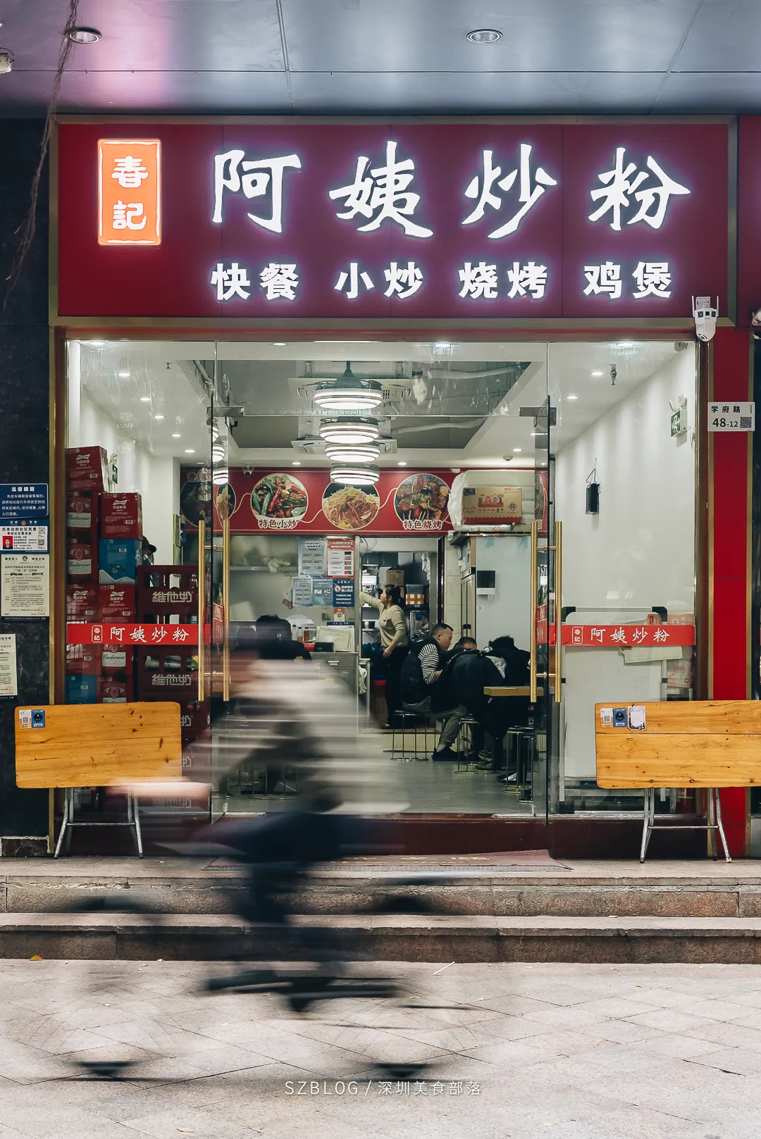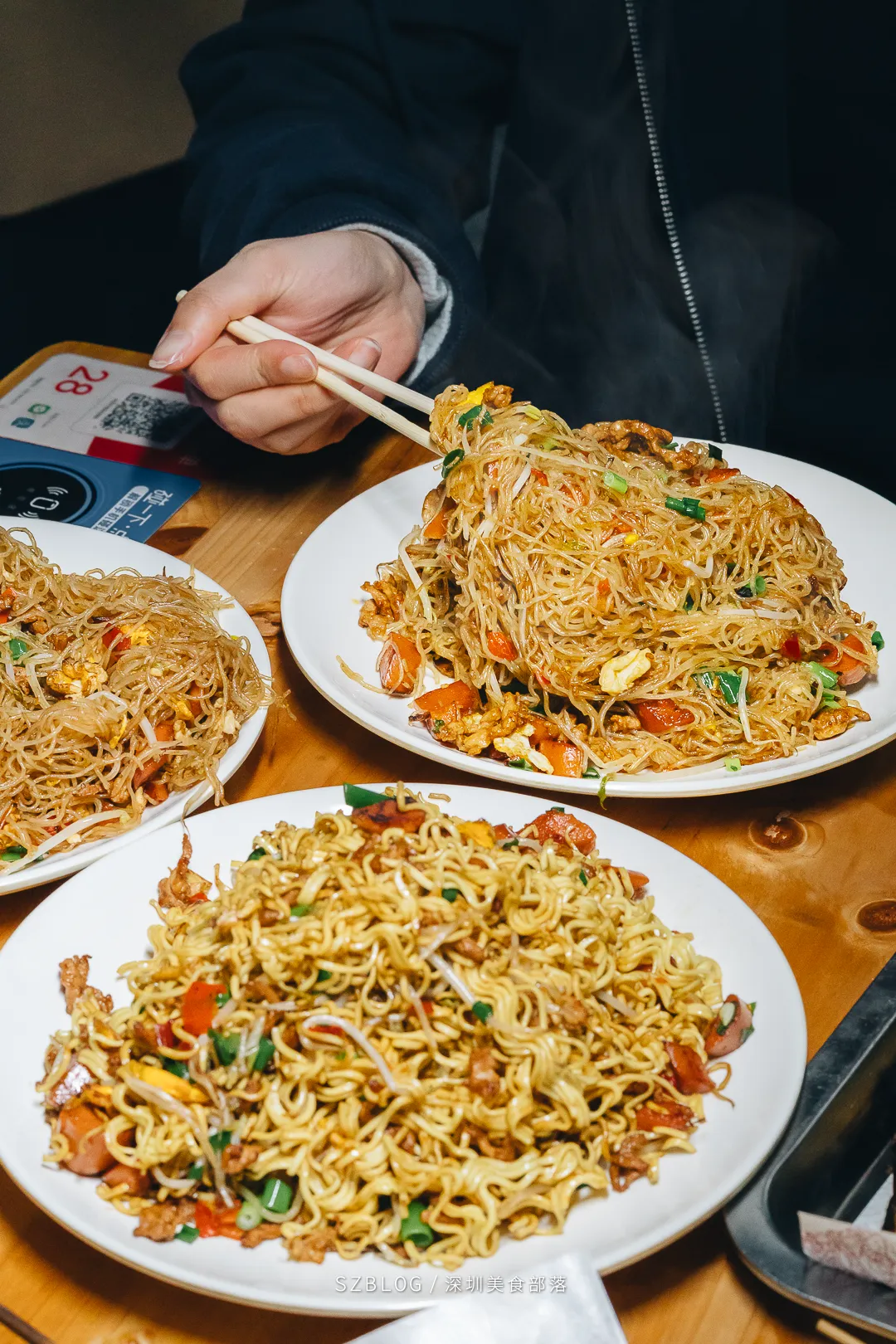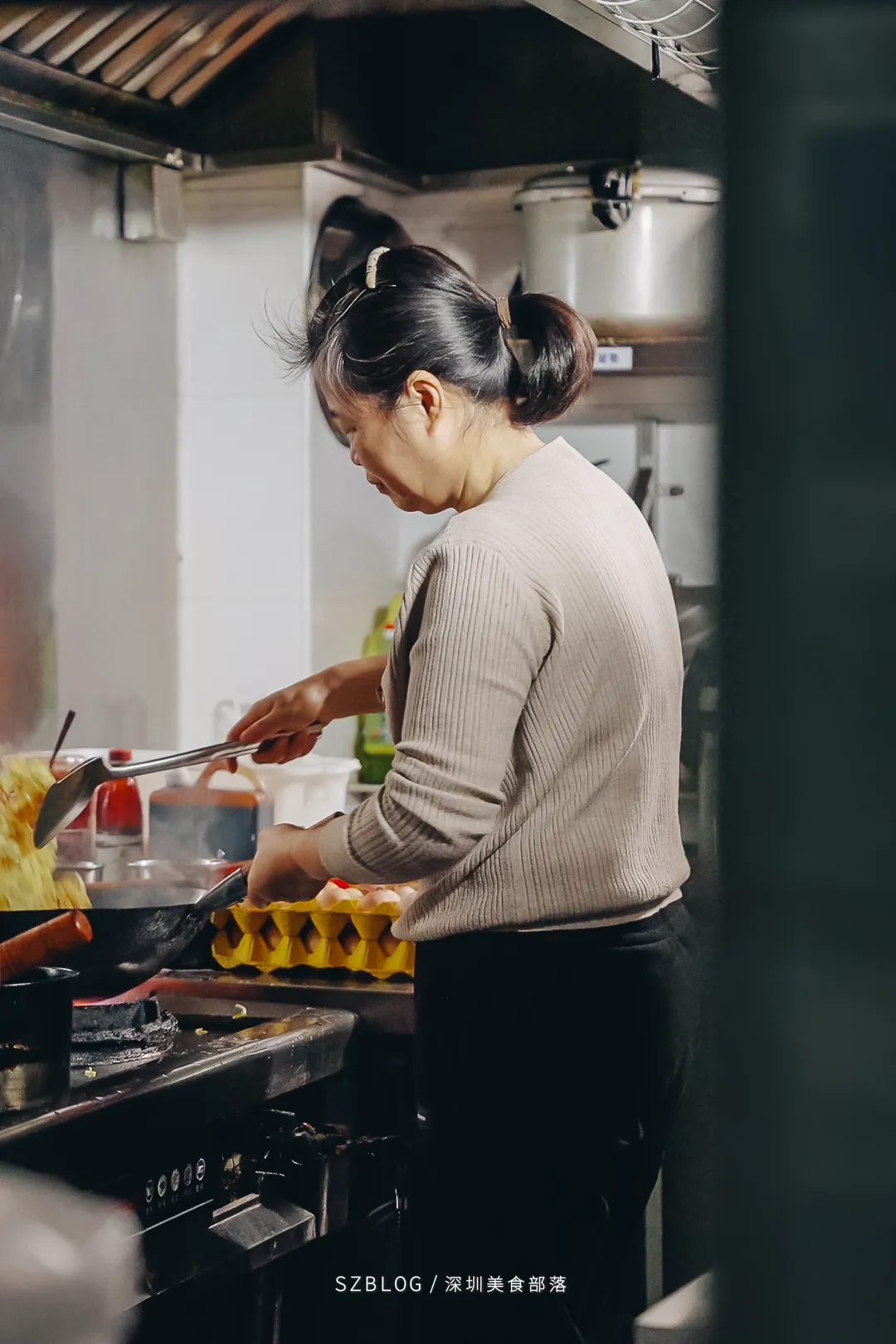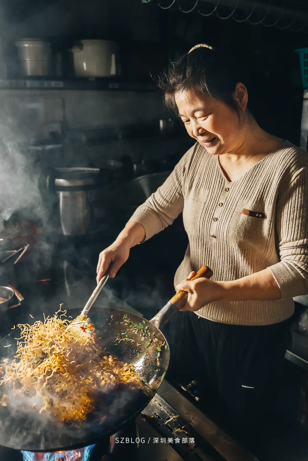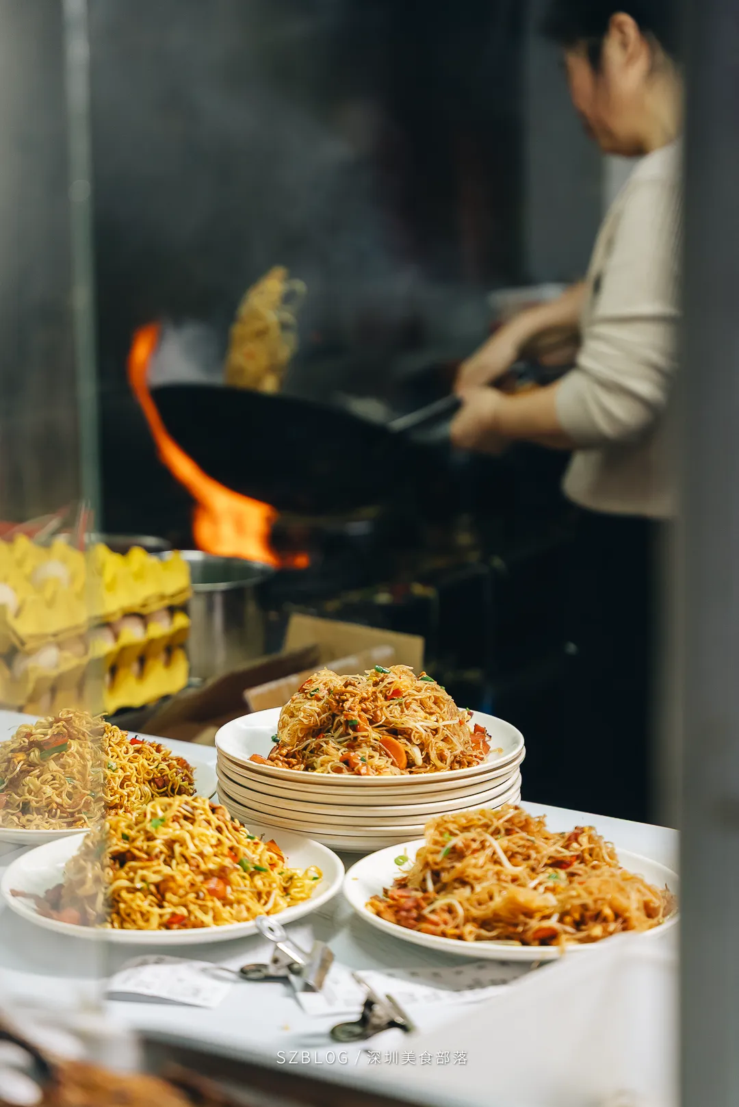 在深大,你问哪里的炒粉最让人惦记,十有八九会听到同一个名字——“阿姨炒粉”。十七年,阿姨的炉火从没熄过。学生走了一届又一届,有人从入学吃到毕业,有人工作了、成家了,还会专程回来,就为这一口。09年,阿姨看着深圳街边那么多炒粉摊,心想自己手艺也不差,索性在深大附近支起了摊。城管来过,旧街拆过,摊搬进了店,店又挪了地方,但阿姨总离学校不远。“怕孩子们想吃的时候找不到我。我的炒粉,也离不开他们。”阿姨的装备很简单,就一个炉子一口锅,一把勺子,几个调料罐。油热了,打个鸡蛋,麻利地把火腿肠切片下锅,再抓一把米粉扔进去——接着就是一连串熟练的颠勺、调味,最后撒上葱花,一气呵成。吃进嘴里,不油不腻,却满是锅气与镬香。这份味道,成了许多深大人共同的味觉记忆。哪怕离开再久,想起大学时光,总会顺带想起这盘炒粉。