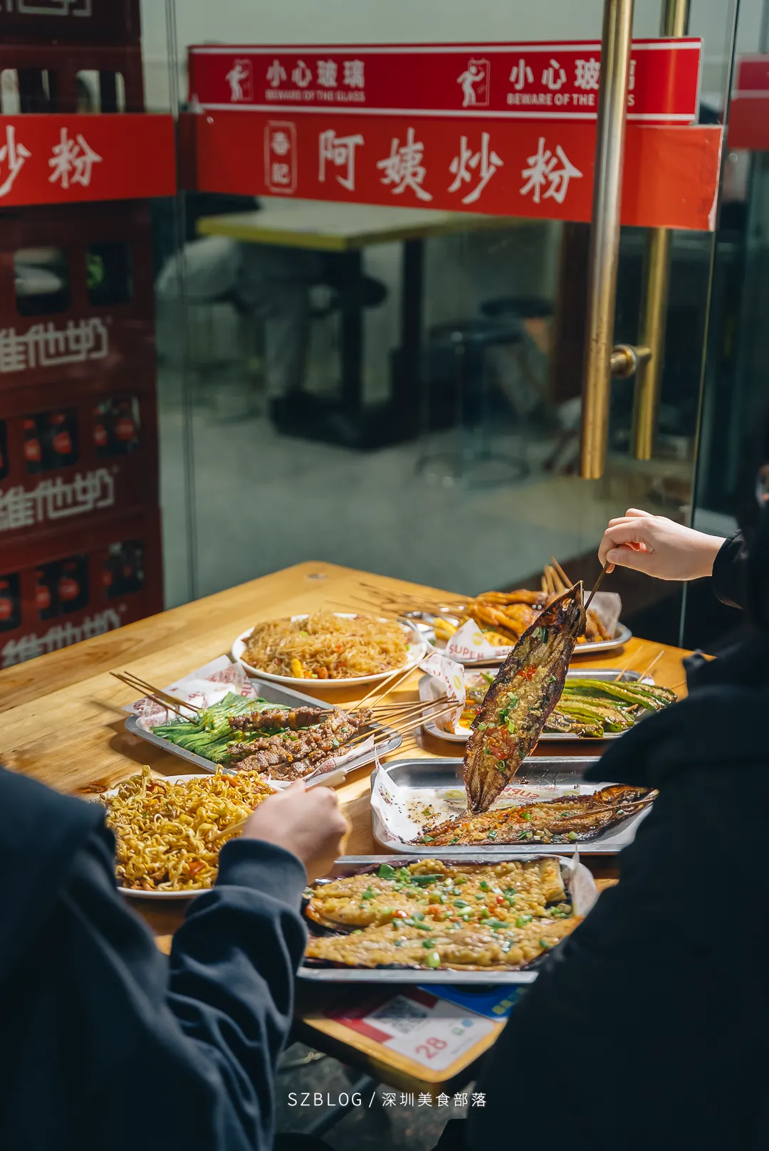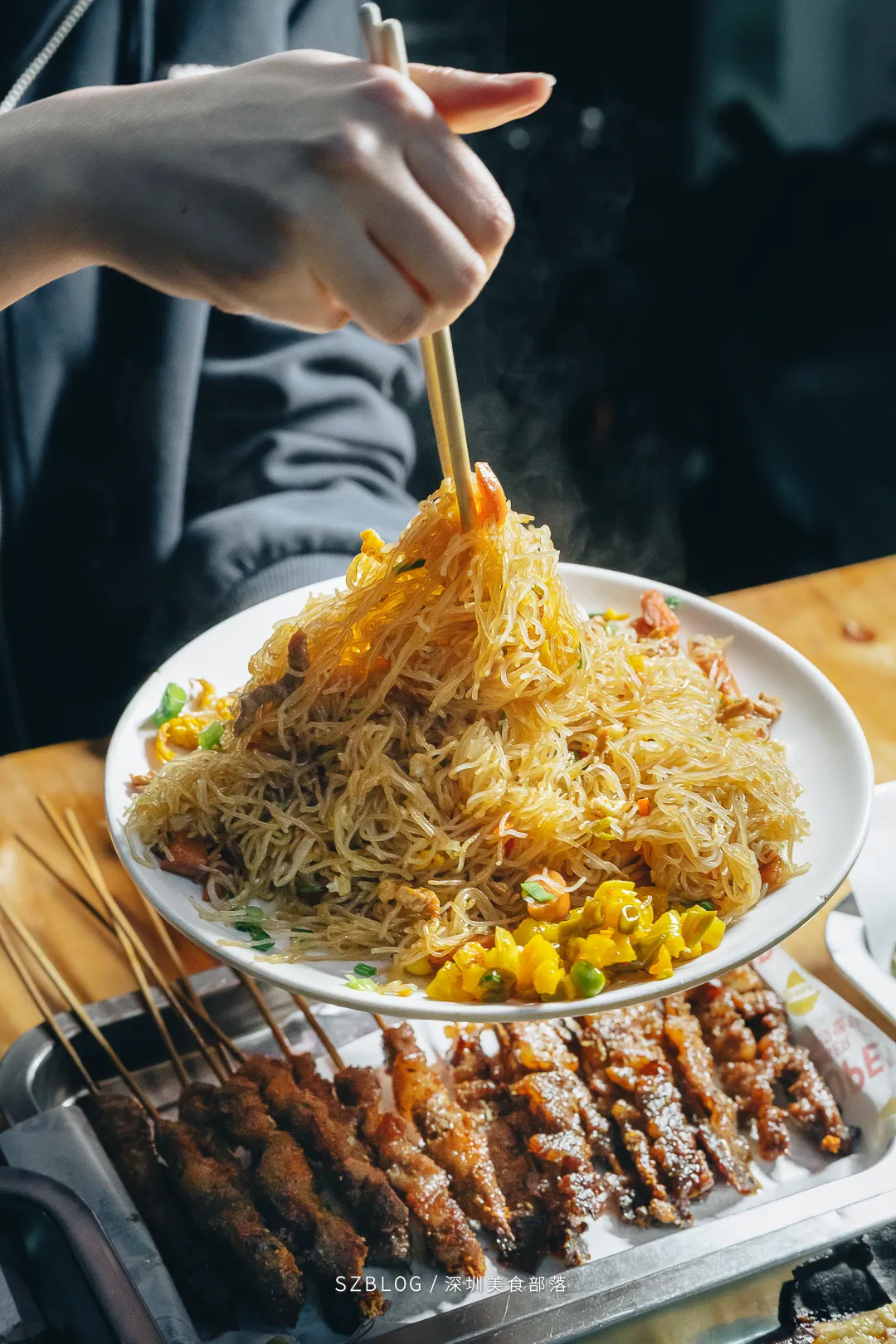@对于起昵称真是很累了: 有一则笑话是,炒粉阿姨一家去唱K,饿死整个南区。 @SJJ要种太阳 : 好吃不贵,经典实惠;深大人必吃榜,代代传承;炒米粉好吃,鸡翅外脆里嫩。 @驼色鼻子的红色狐狸: 下课直奔阿姨炒粉摊,还是排队。加蛋加肉,锅气足到爆。端着一次性饭盒和兄弟蹲路边嗦粉,这味道,陪我熬过整个大学。 @zzllo11 : 炒粉好好吃,烧烤也不错。三两人或多人聚餐还挺热闹的,像回到大学生活。