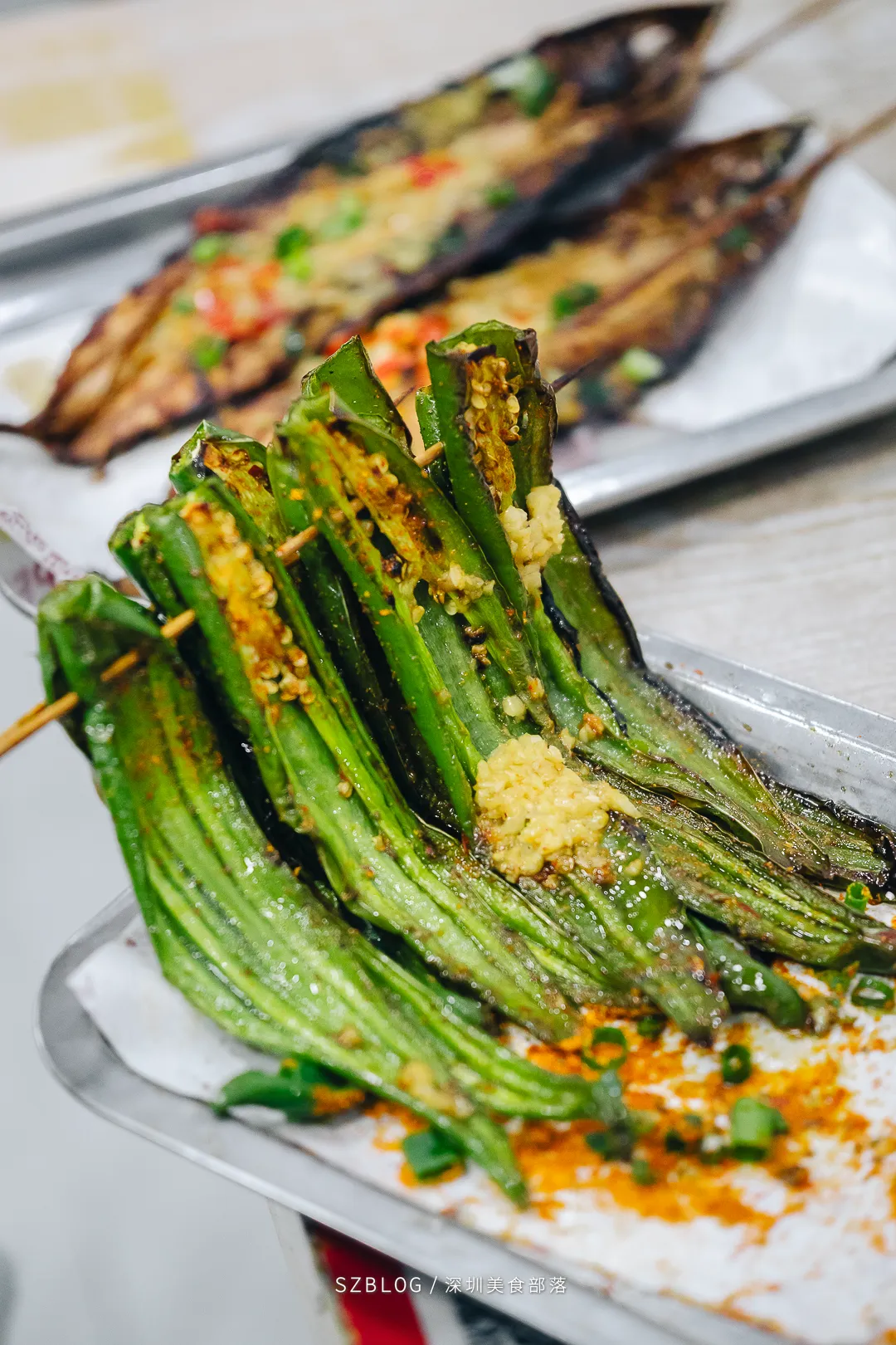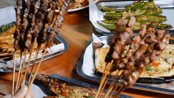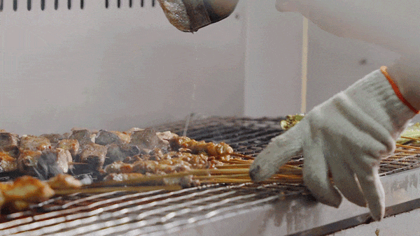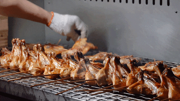 后来阿姨有了店面,也请了人手,加了烧烤、鸡煲和小炒。但每份炒粉,还是得她亲手来。“以前摆摊只能打包,现在有地方坐了,就想让孩子们多点选择,吃得丰富些。”鸡腿的外皮烤得焦脆,里面的肉很嫩还流着汁,阿姨说这是学生最爱点的一款。划开的茄子上面铺了满满的蒜蓉辣椒酱,吃起来软乎乎的还带着蒜香。