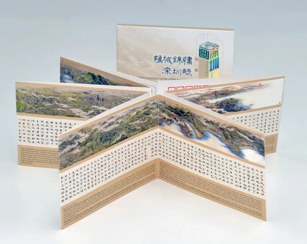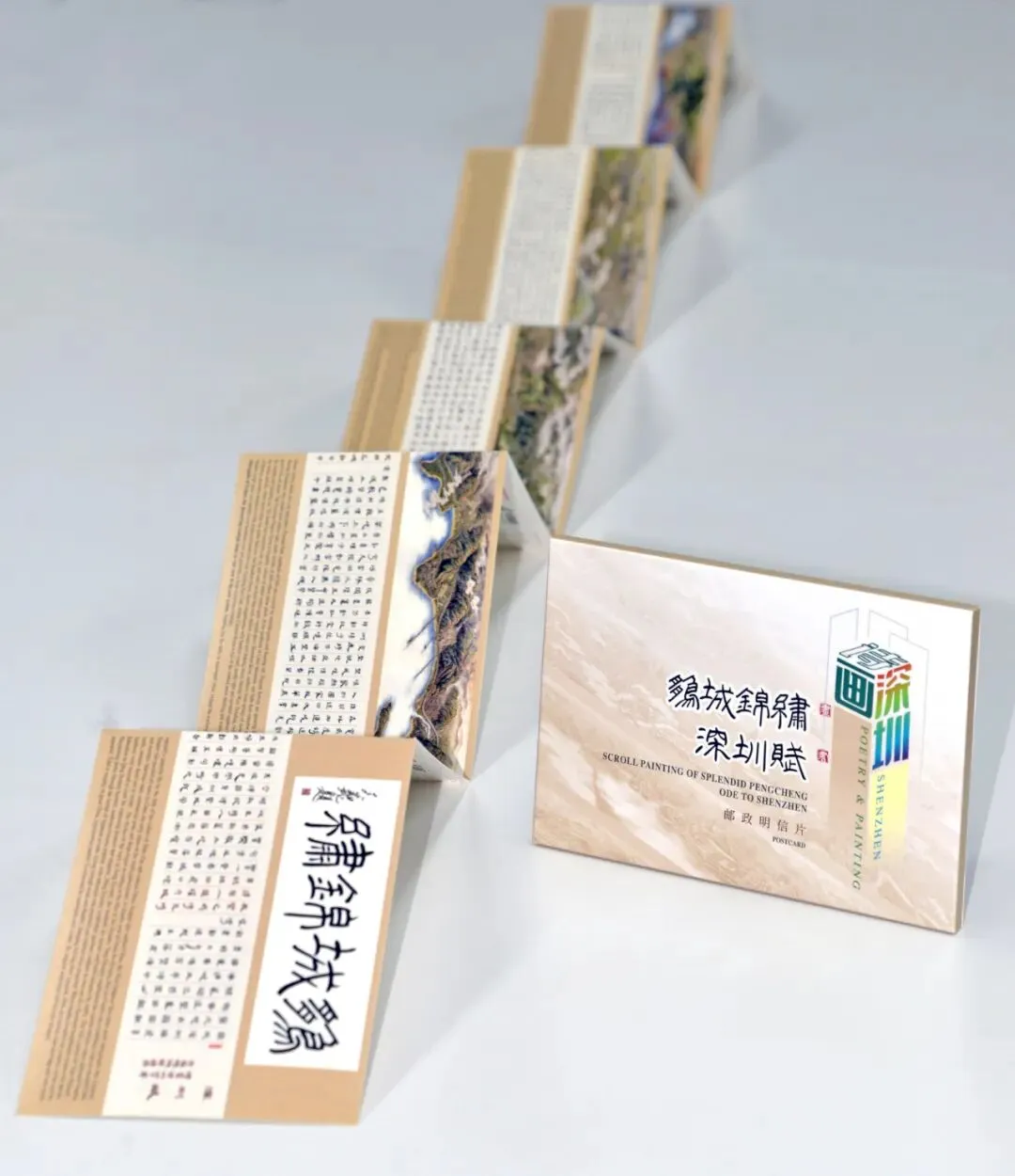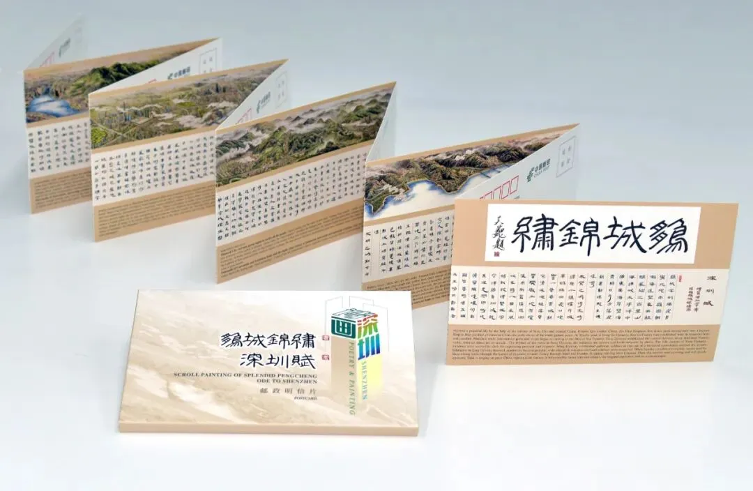 本报讯 近日,《鹏城锦绣图·深圳赋》邮政明信片由深圳邮政发行,该套明信片为一套10枚连体。明信片上不仅有中国画长卷、书法、诗赋,而且特意作了英文翻译,旨在让国内外友人通过这套明信片领略深圳生态风光和建设新成就。