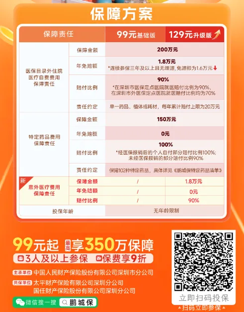 - 升级版:129元/年(新增“意外医疗费用保障”)。