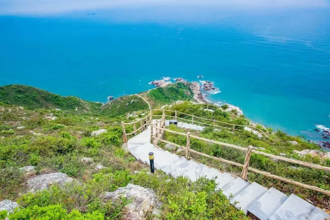 从海边一路延伸到天文台的海天栈道,海天一色风景一流,目测有500到600左右的台阶数,半小时左右即可到达天文台。站在悬崖栈道上吹着海风,回望这海天一色的山海奇观,感觉世界都是自己的,真的很美。