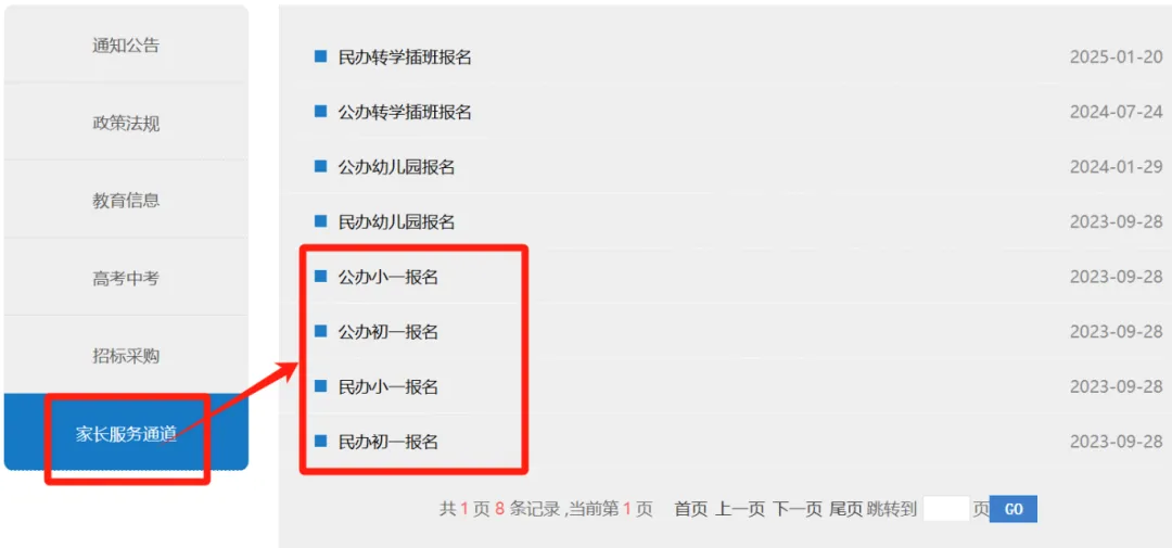 ①小一:https://zsbm.lggov.cn/visitlggbxyjz