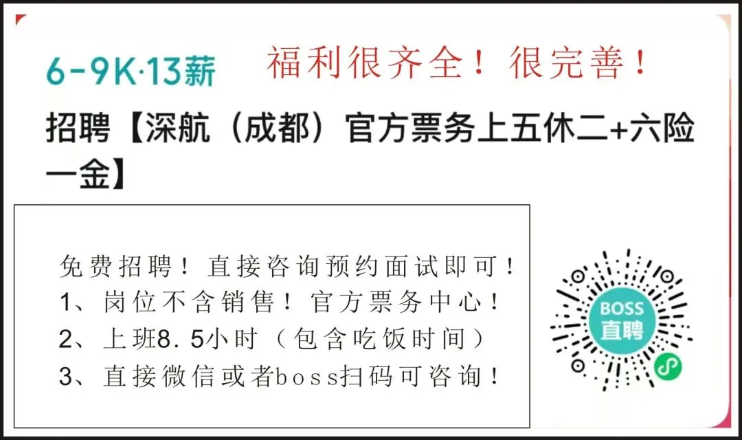 深圳航空(成都)官方票务26年首次招聘