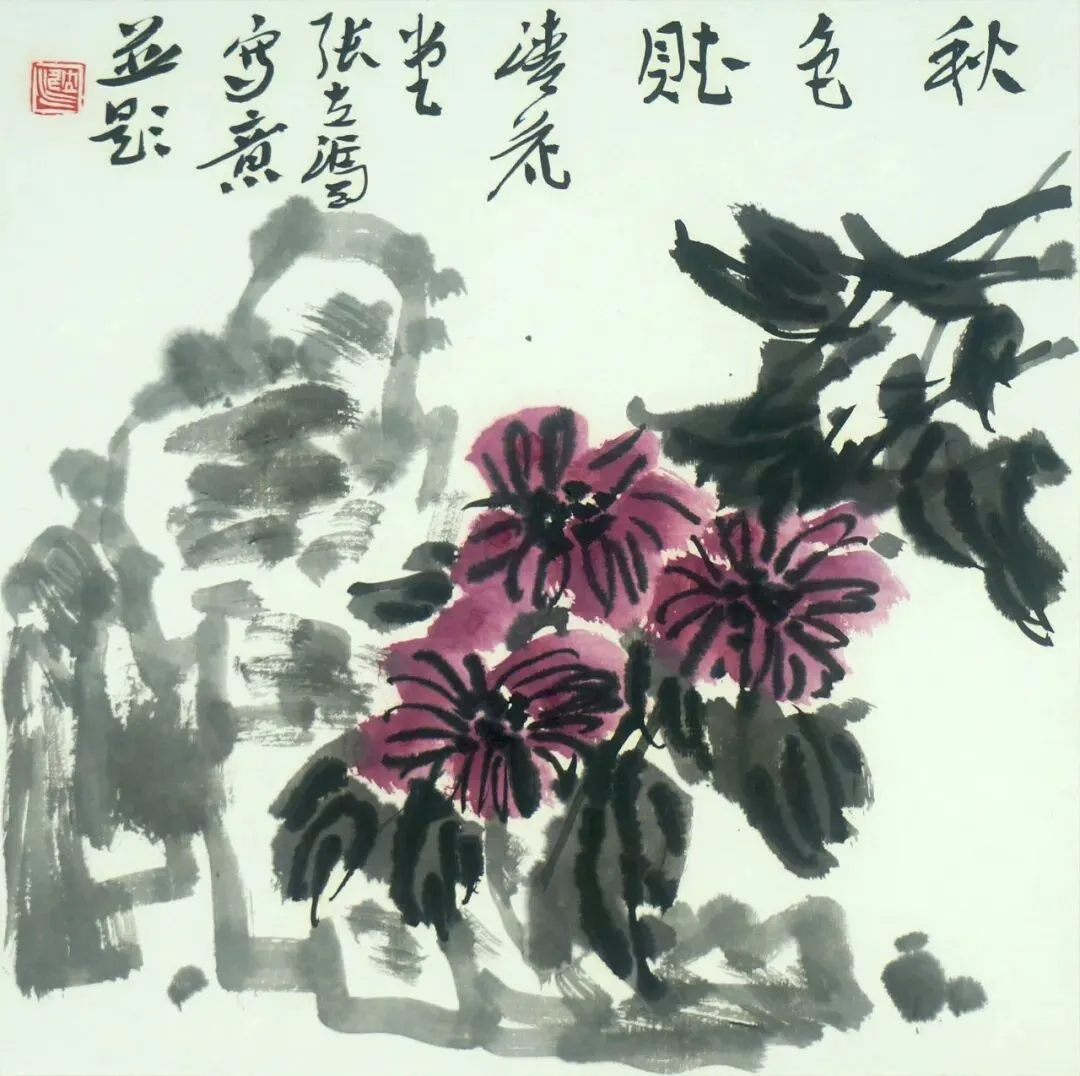 作品浅析:这幅《春晖》以生动传神的笔墨,描绘出春日枝头鸟语花香的盎然生机。画家以浓淡相间的墨色勾染禽鸟的体态与羽毛,再以朱砂点睛,顿使鸟雀形神兼备,呼之欲出。花叶部分则以富有节奏的墨色与青绿挥洒,阔叶舒展,细叶挺拔,其间点缀粉白花朵与鲜红浆果,色调明丽却不失雅致。