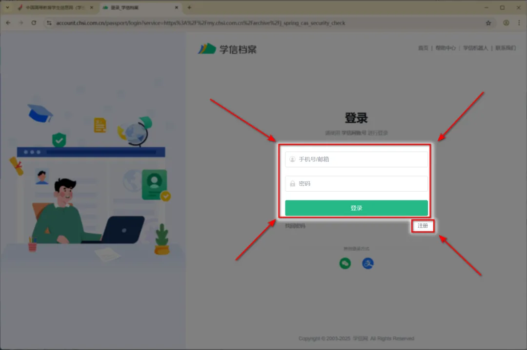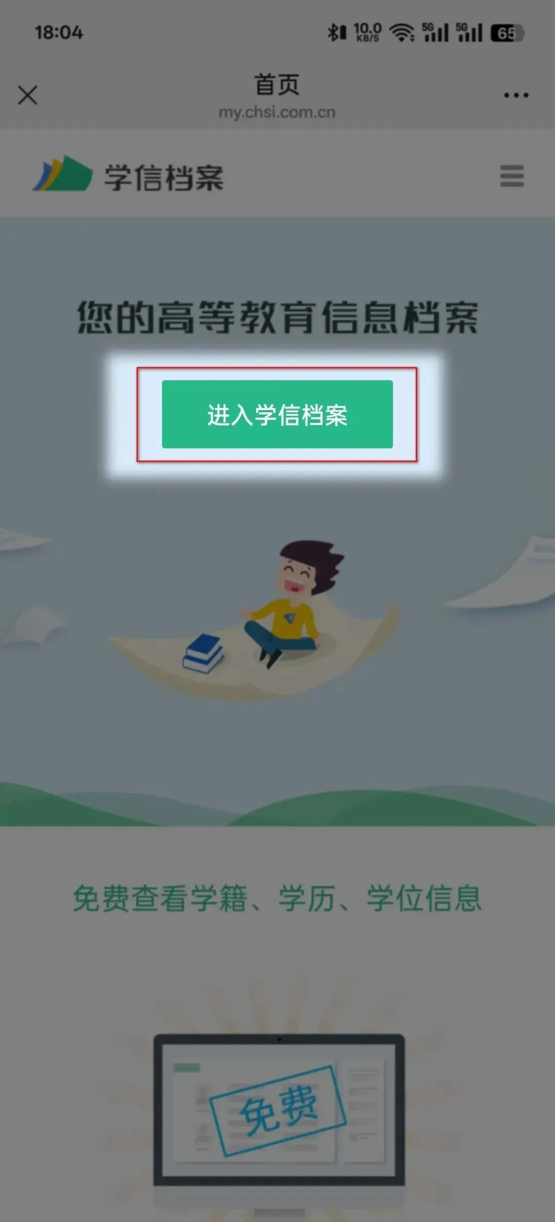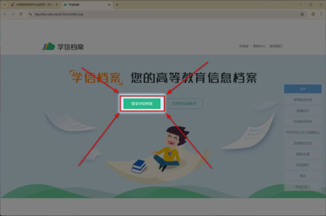 3、点击“进入学信档案”(未注册的需先注册哦)。