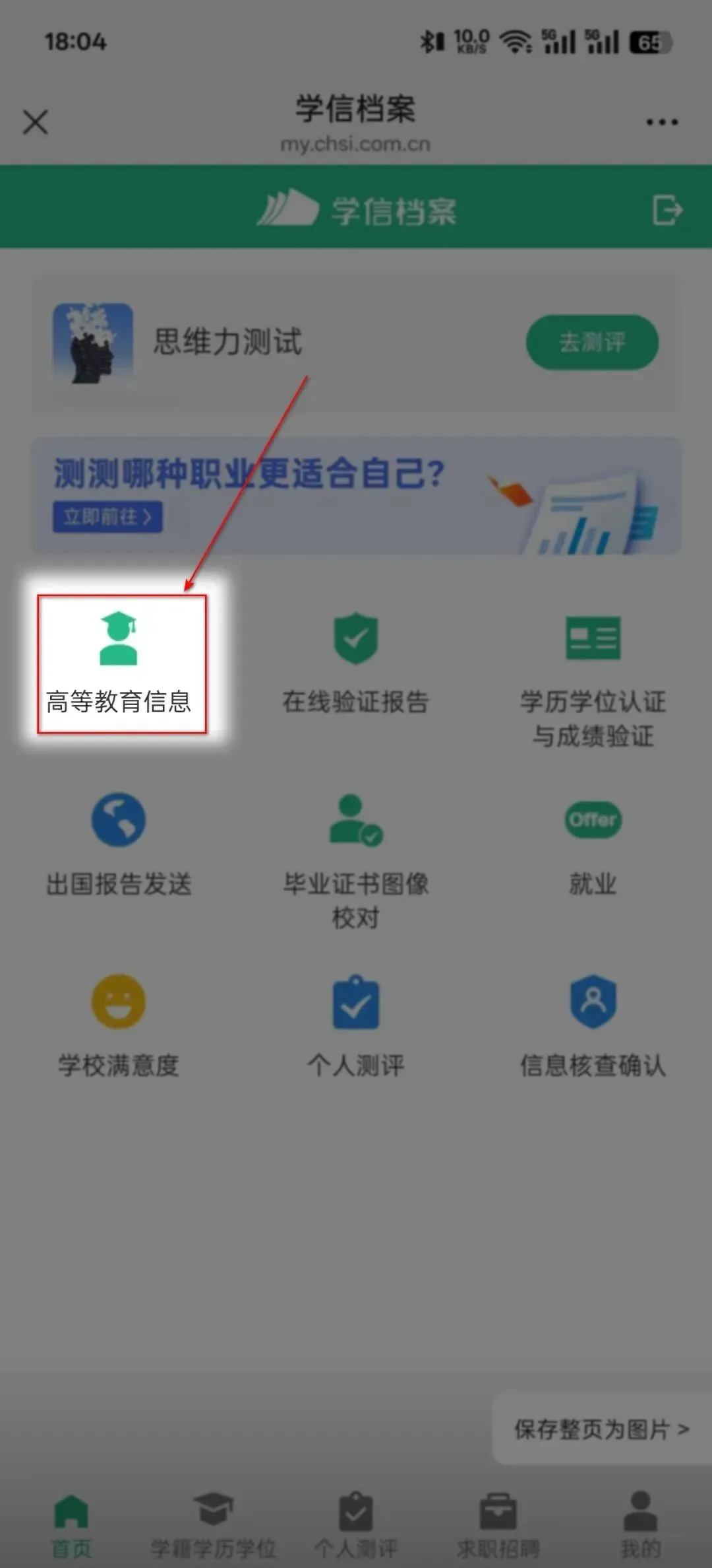 4、登录成功后,在首页找到“学籍/学历”选项,可查看“学籍/学历”信息,如图: