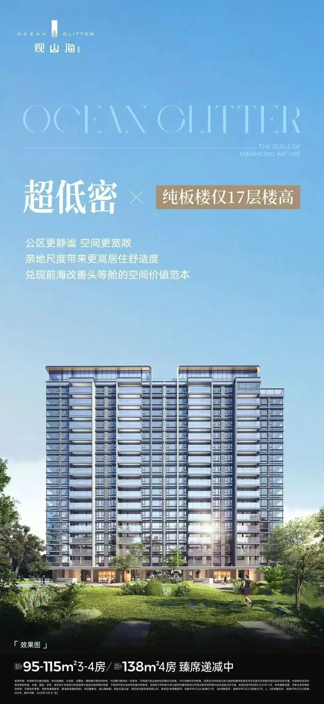②【一生总要住一次低密舒居】约2.66容积率深圳罕见超低密,4栋仅17层亲地舒居,层高约3.05m,2梯2户设计,0保障房/人才房