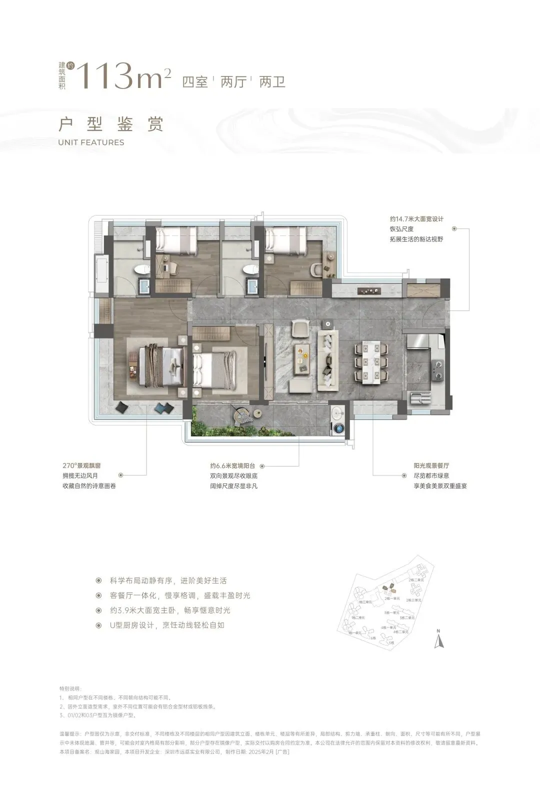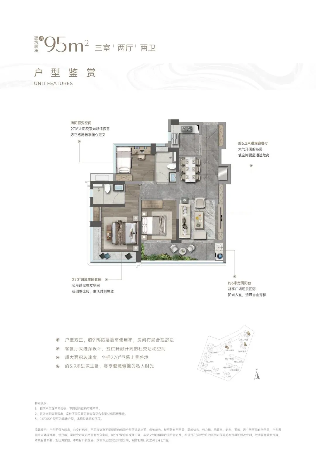 ⑥【一步到位性价比王牌 前海改善头等舱】4栋建面约138㎡奢阔山居范本:LDKB一体化,增配多功能厅、最大约15.5米南向四开间、约6m宽境阳台、主卧270°巨幕飘窗带独立卫浴及衣帽间、最高约94%拓展后综合使用率