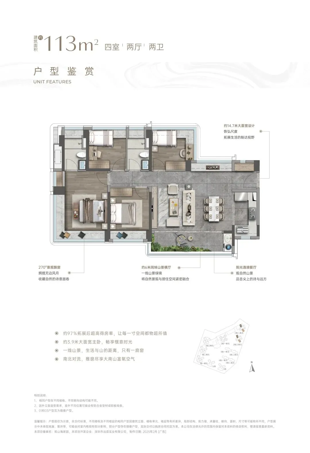 ③【前海寸土寸金 大境凤毛麟角】不止一线临山,更是三面环山,至阔约46米楼距赏山园双境,臻藏不可复制的永久一线大南山景