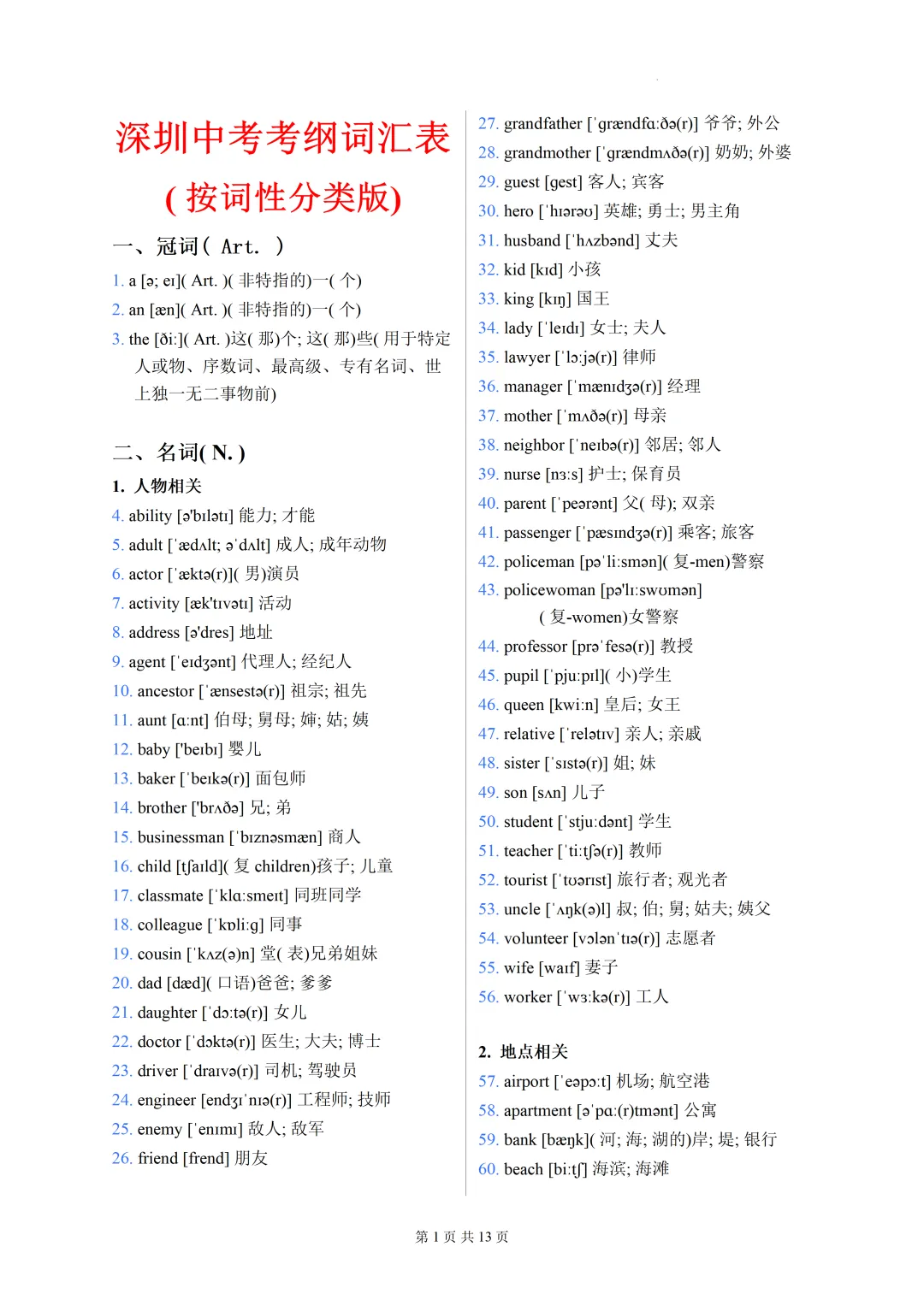 通过百度网盘分享的文件:深圳中考考纲词汇表.docx