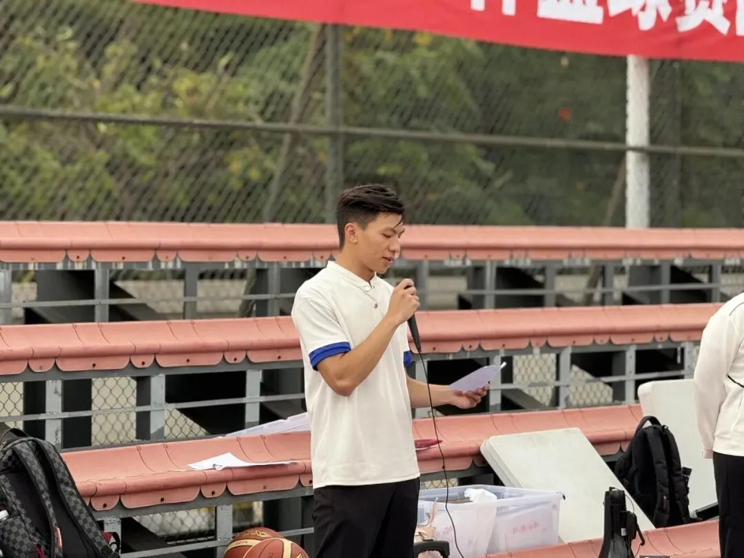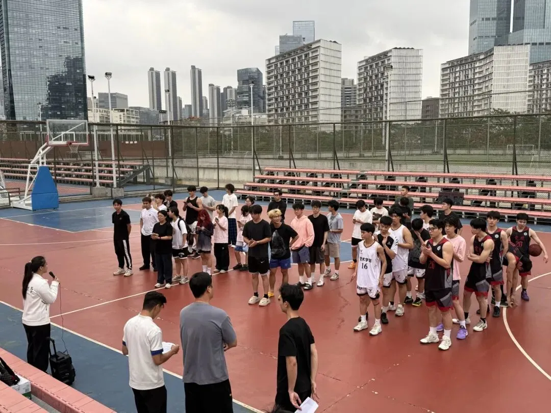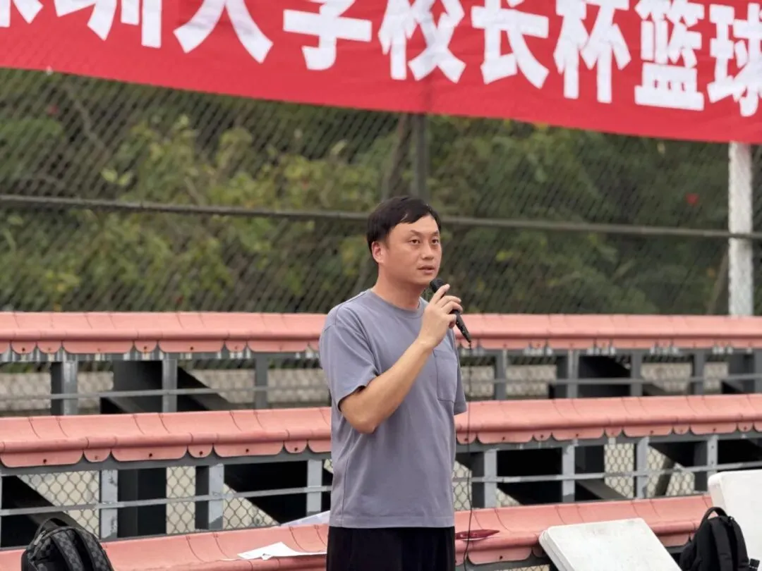 4月8日17时30分,2026深圳大学院际校长杯篮球赛开幕式在运动广场天台1号场隆重举行。深圳大学体育学院竞训办副主任、深大篮协指导老师张辉莅临现场,各学院参赛队伍的领队与队长悉数到场。开幕式上,指导老师张辉发表致辞,裁判员代表陈海福、运动员代表黄启庭分别宣誓,共同拉开本次赛事的序幕。
