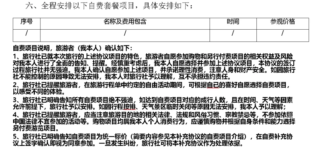 3、行程自费推荐:(客人自主选择,客人参与,请配合导游签名同意;客人不参与将不影响参团体验(或客人不参与,导游会安排附近自由活动)