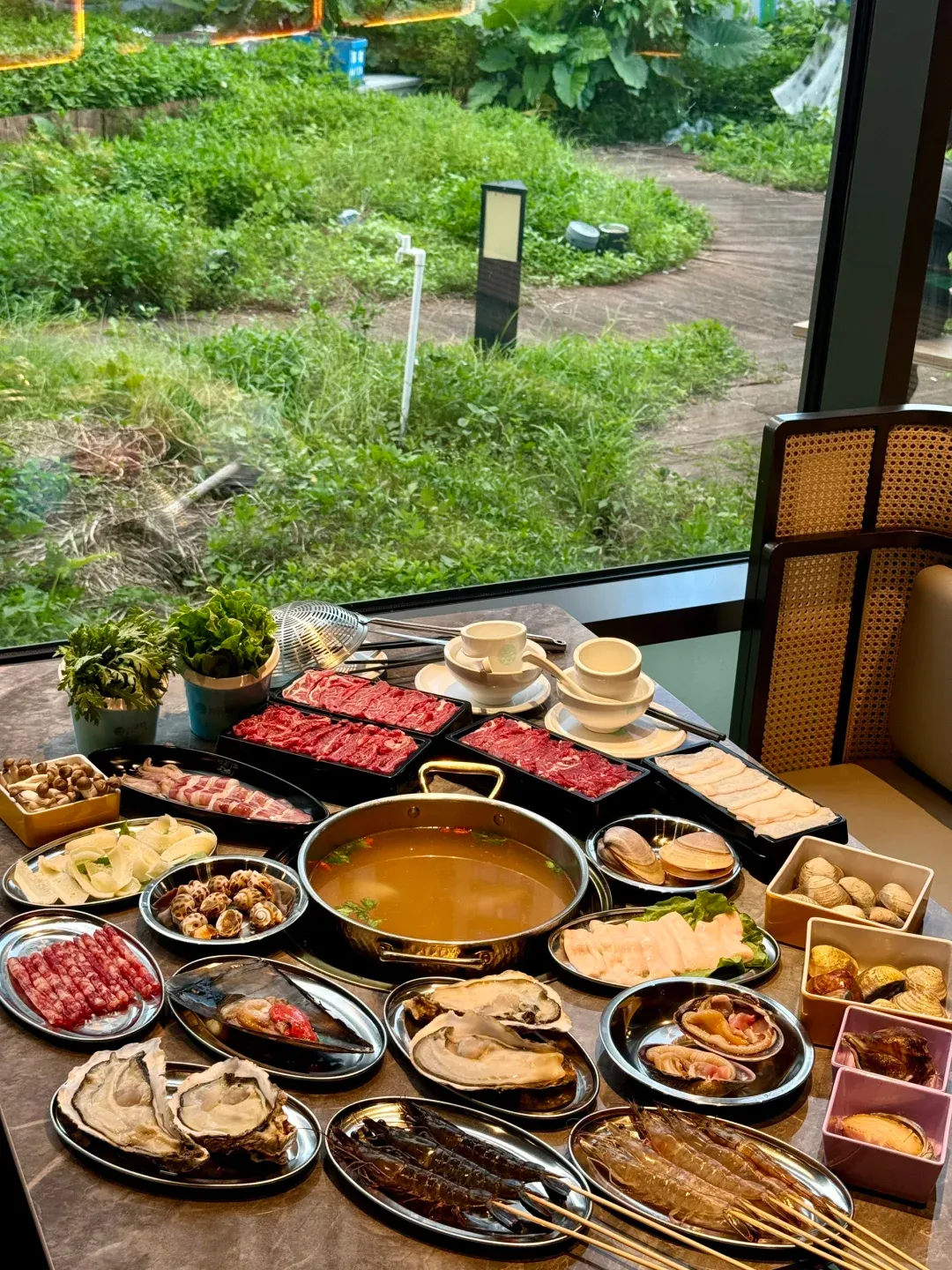 📍地址 :宝安壹方城店(宝安区新安街道壹方城 5 楼)🚇交通 :地铁 11 号线「宝安中心站」步行至壹方城 5 层✨核心亮点 : 现捞活海鲜 (基围虾、生蚝、鲍鱼、扇贝)+ 鲜切潮汕牛肉 (三花趾、匙柄、嫩肉)双自选,含锅底、茶位,百种涮菜畅吃,适合家庭 / 朋友聚餐,性价比超高。- 错峰打卡:工作日午市人少、菜品更新快,部分门店有 午市特惠 (如顶界 228 元、渔舶汇 238 元),性价比更高。