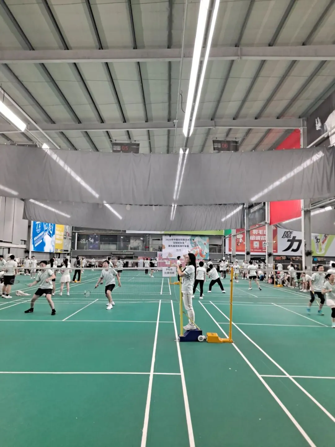 比赛现场热闹非凡,12 个场地同时开赛,来自各地的校友们齐聚一堂,在羽毛球场上尽情展现运动风采。赛场上,选手们步伐矫健、身姿轻盈,扣杀、轻拍、封网等一系列高难度动作轮番上演,比分交替上升、你追我赶,精彩场面层出不穷。选手们挥汗如雨,用顽强拼搏的姿态诠释着坚韧不拔的体育精神,场下观众的欢呼声、喝彩声此起彼伏,将现场氛围一次次推向高潮。