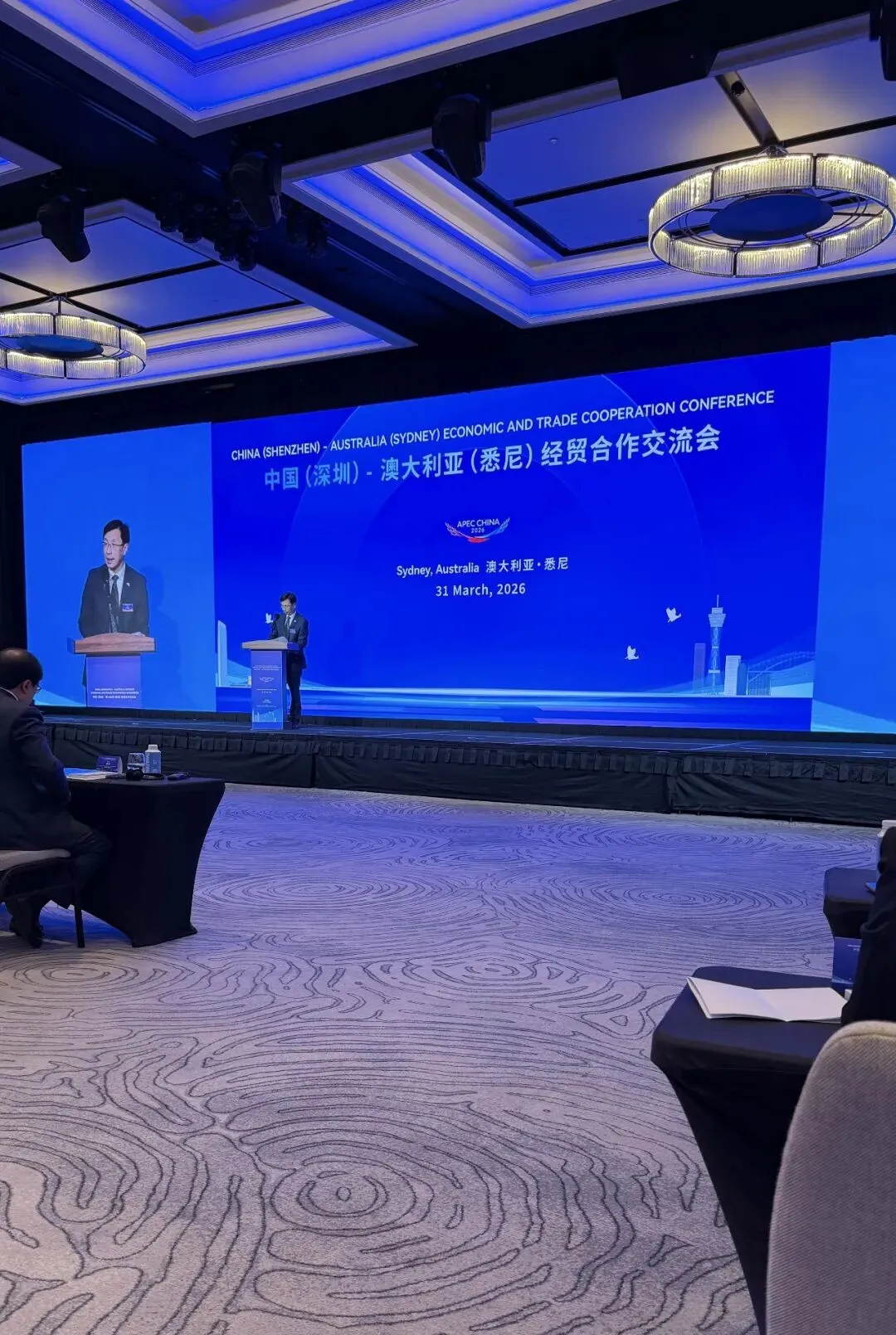 2026年3月31日,中国(深圳)-澳大利亚(悉尼)经贸合作交流会在悉尼四季酒店举行,旨在深化两地务实合作,共谋发展新机遇。深圳市政府市长覃伟中、中国驻悉尼总领馆参赞叶威、澳大利亚贸易投资委员会负责人Craig Young等政商界代表出席。