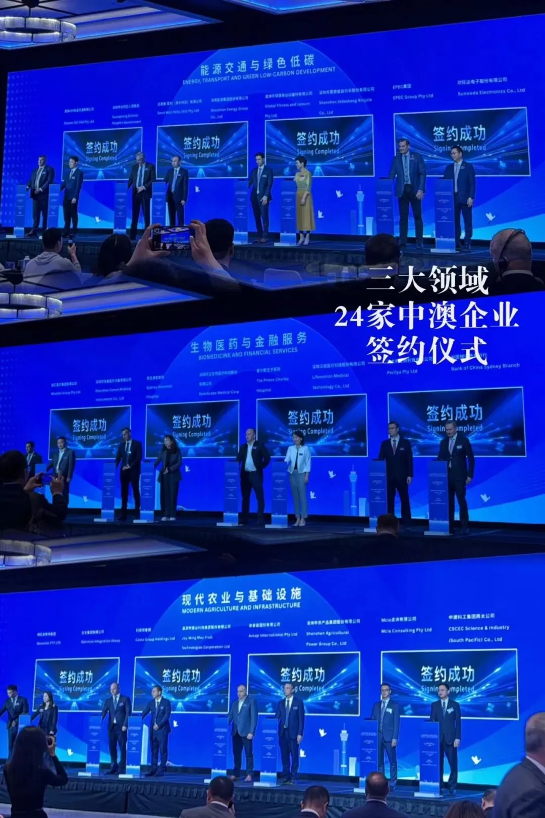 澳大利亚中国工商业委员会新州分会首席执行官Patrick Mayoh分享了中澳企业合作经验。深圳能源集团总裁欧阳绘宇、优合集团联席董事长魏楷錂分别推介企业在清洁能源及全球供应链领域的优势,并发布合作需求,获得澳方积极回应。活动现场举行了签约仪式,多项合作项目达成签约。