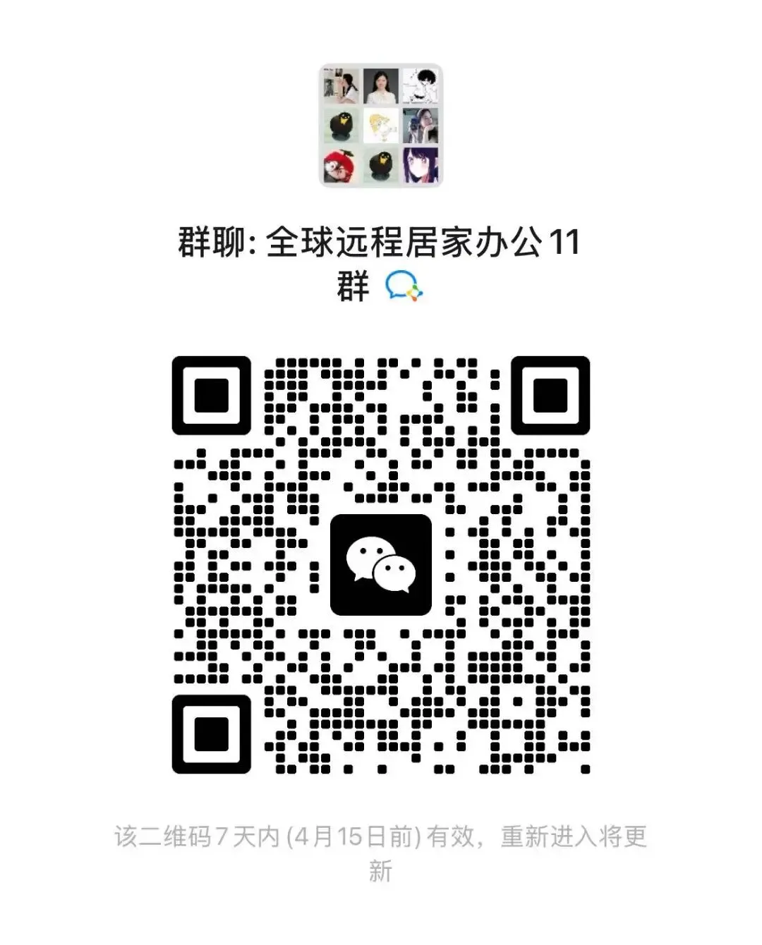 如果您对远程工作感兴趣,欢迎扫码加入咱们【全球远程居家办公群】!!