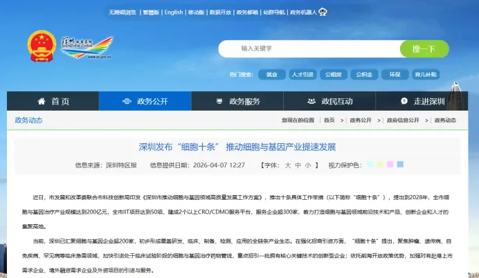 2. 深圳发布《深圳“细胞十条”发布!推动细胞与基因产业提速发展》,深圳特区报