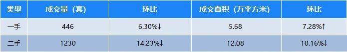 深圳一手住宅市场共成交446套,成交量环比下降6.30%,成交面积5.68万平方米,成交面积环比上升7.28%。