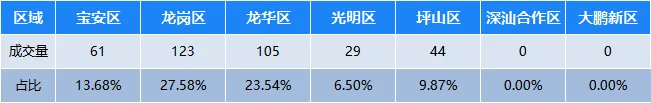 宝安区成交61套,占全市成交的13.68%;
