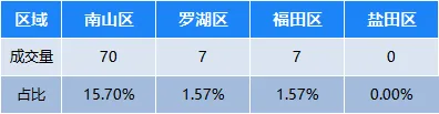 罗湖区成交7套,占全市成交1.57%;