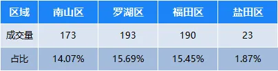 南山区成交173套,占全市成交的14.07%;
