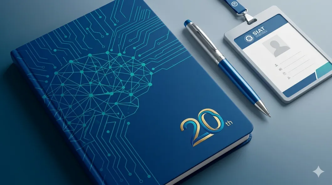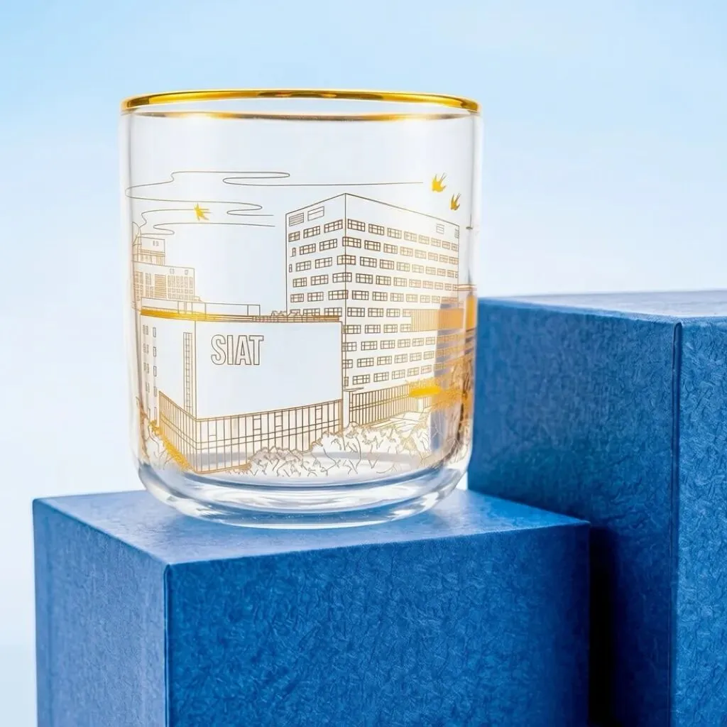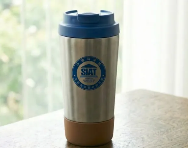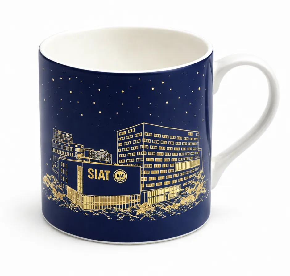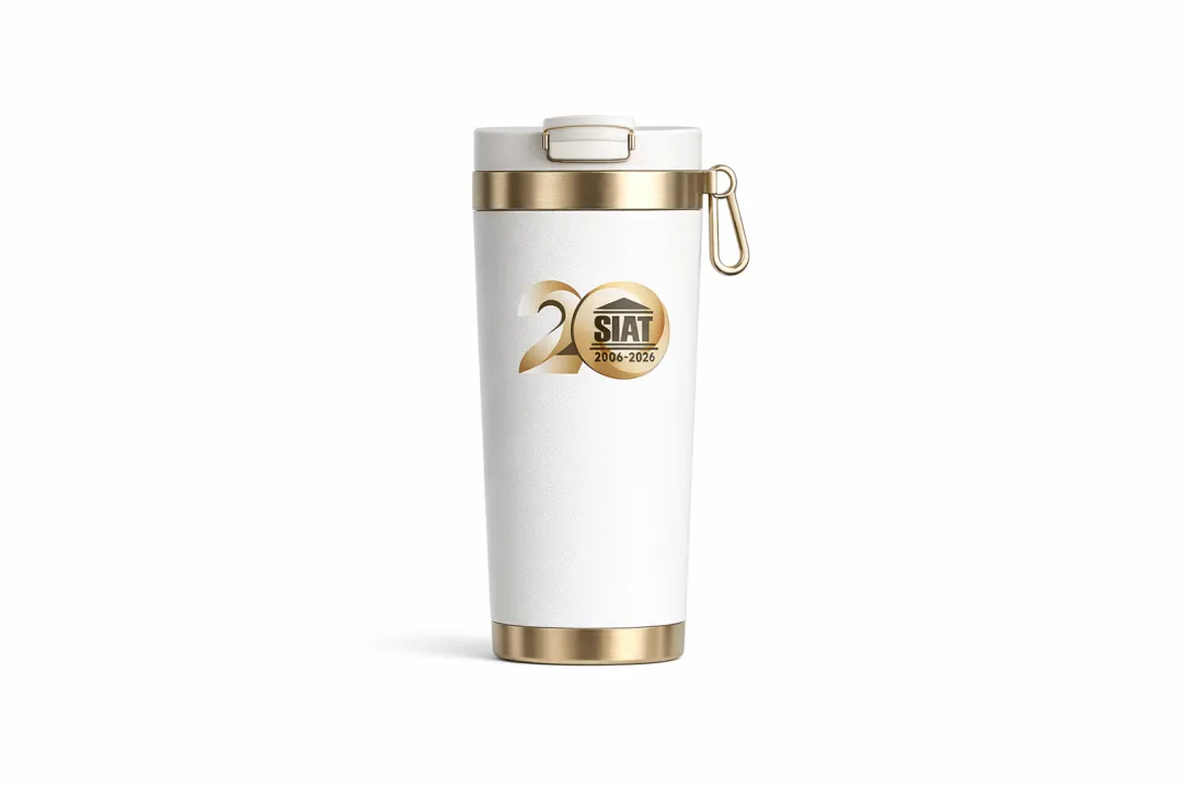 钛保温咖啡杯:保留钛金属原色质感,杯身中心精密印制 SIAT 官方圆形徽标,展现科技硬核美感。