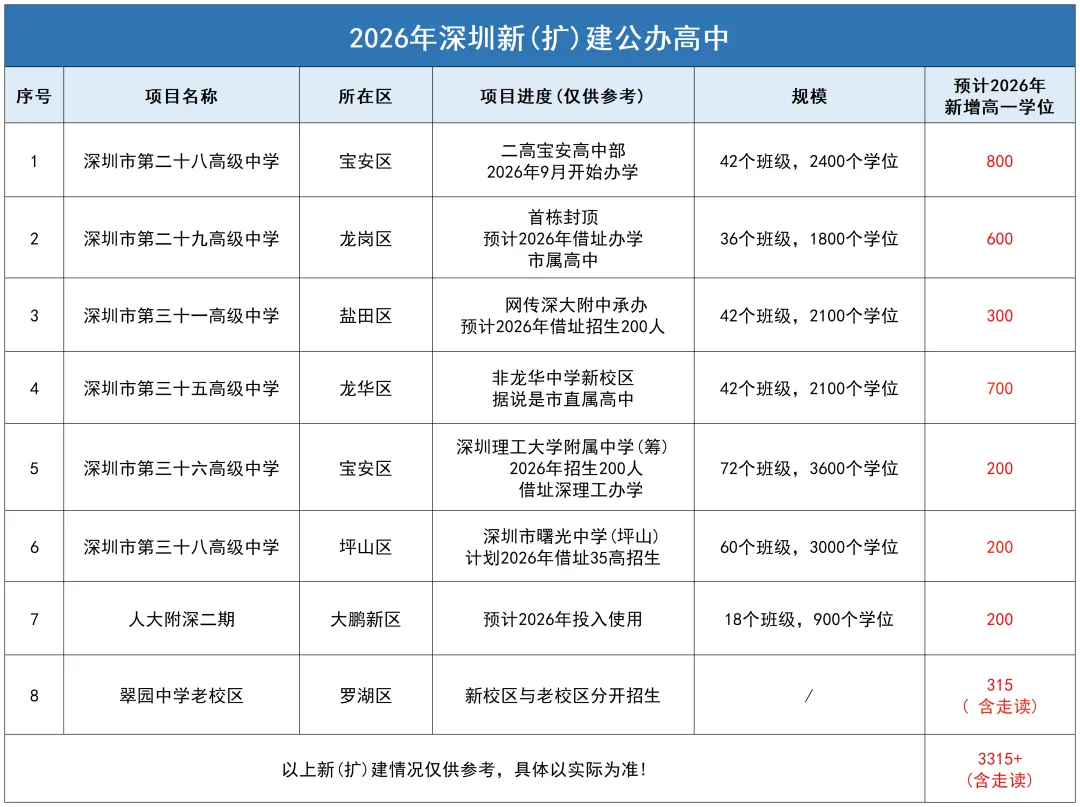 今天给大家盘点2026年将会招生的新建高中,具体内容如下: