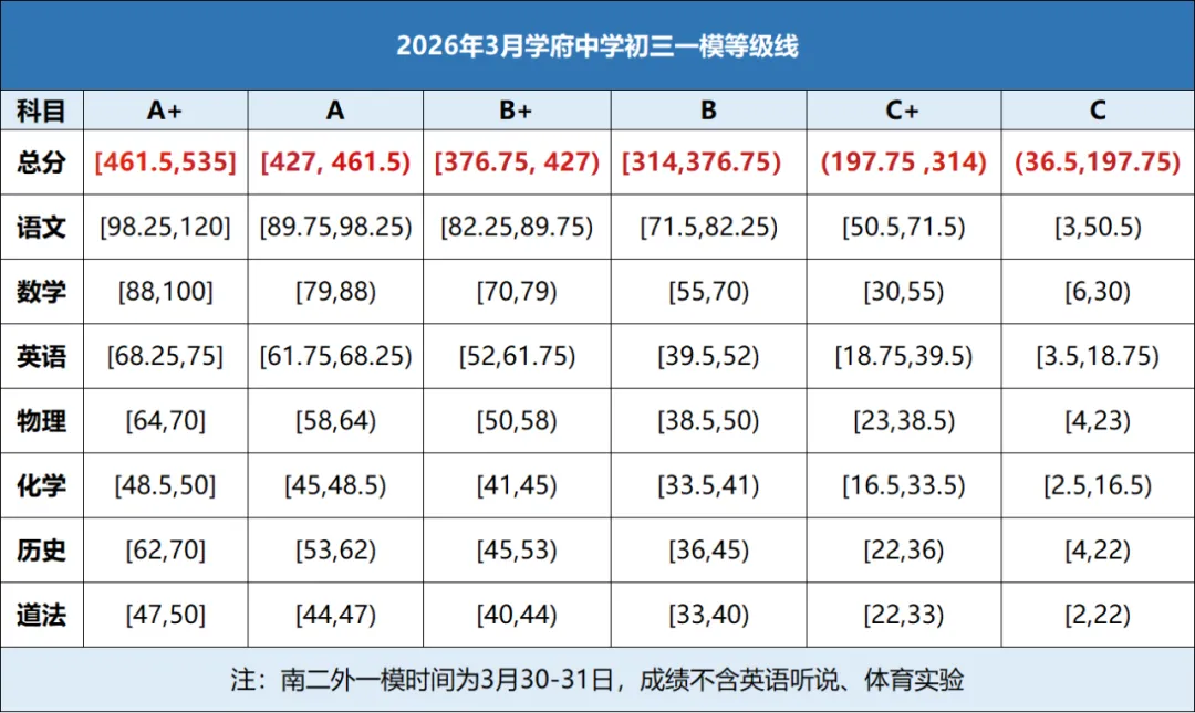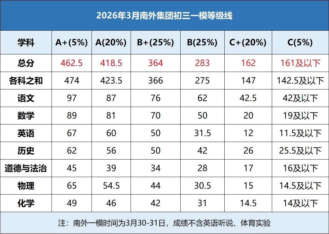 3月30-31日进行了南外、南二外等学校一模,近日相关等级线已经出炉!质心姐姐给大家汇总了南外、南外高新、学府中学、育才、福田多校联考等一模等级线,大家可以参考一下!另外有需要最新模考卷练练手的,也可以扫码免费领取真题~