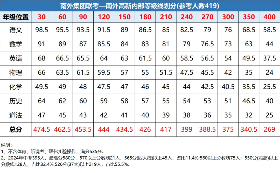 本次考试不含体育、英语听说、理化实验成绩,满分535分。A+线458.5分。
