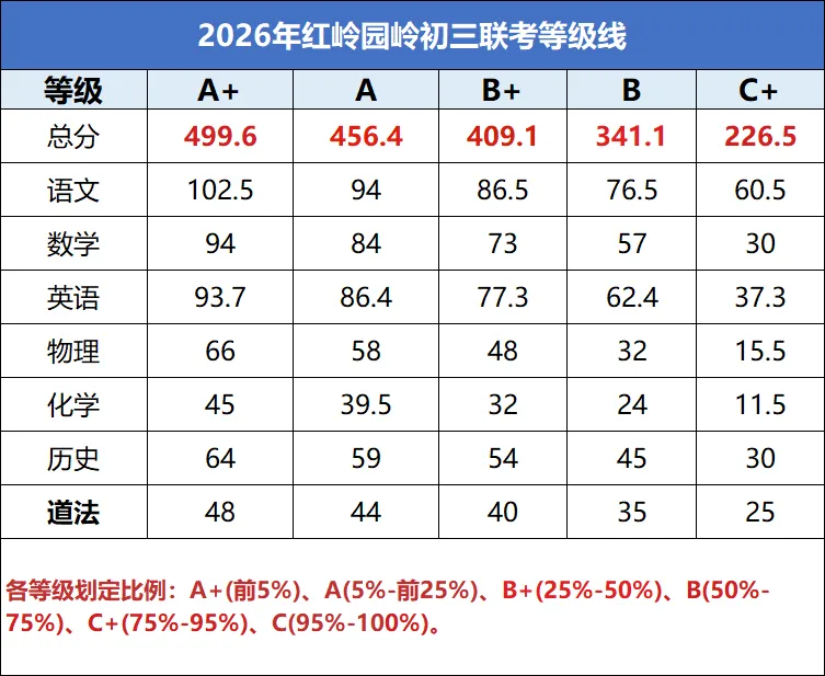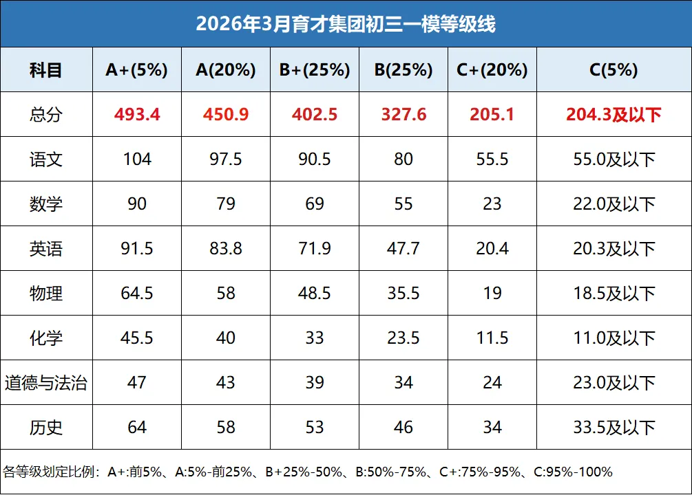 总分等级线划分的比例主要为:A+(前5%)、A(5%-前25%)、B+(25%-前50%)、B(50%-前75%)、C+(75%-前95%)、C(后5%)。