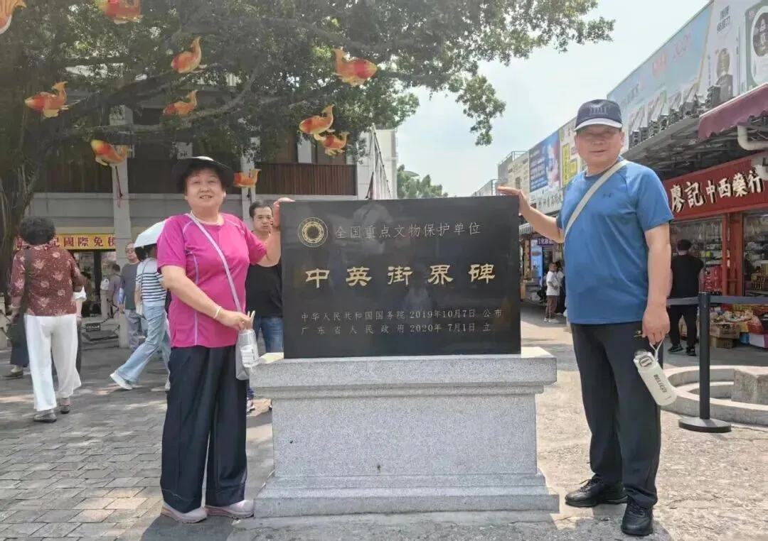 下午1点多,我们第一站抵达盐田区沙头角,经过出境和进港的两重安检,踏入了藏着百年故事的“时光长巷”---中英街。“一街两制”的独特风貌在这里尽情舒展,古榕树浓荫蔽日,绿意缠绕整个街巷,老建筑与特色商铺相依,虽没有摩天楼宇的巍峨,却自有一份温润的市井气息。行人摩肩接踵,满心欢喜地挑选着琳琅满目的好物。我们漫步其间,也忍不住购置了体恤、牛肉粒、巧克力、榴莲酥、抗皱滴丸等港澳产品,在免税好物与地道风味里感受烟火暖意,于界碑与老建筑间品读岁月沉淀,都市的摩登与老街的温情,在此刻完美交织。
