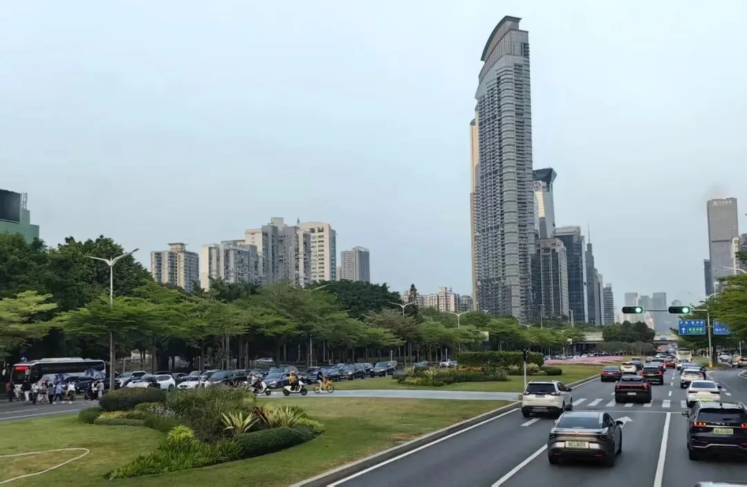 从中英街出来,我们换乘观光巴士游览全国最美的景观大道---深南大道,它被誉为深圳的一张名片,全长25.6公里,横跨罗湖、福田和南山三个行政区。观光车缓缓前行,从二层的观景窗望去,城市界面似一幅流动而靓丽的长卷徐徐展现在眼前:大道宽阔,绿树成荫,乔木与鲜花错落相依,两侧高楼大厦比肩而立,形态不一,玻璃幕墙映着天光云影,线条利落大气,层层叠叠铺向远方,天际线特别壮阔磅礴。街上车流有序,行人或步履从容,或行色匆匆,或悠然漫步,烟火气息在楼宇与绿荫间轻轻弥漫。一路前行,繁华与绿意相拥,喧嚣与宁静相伴,这座城市的活力与温度,尽收眼前。