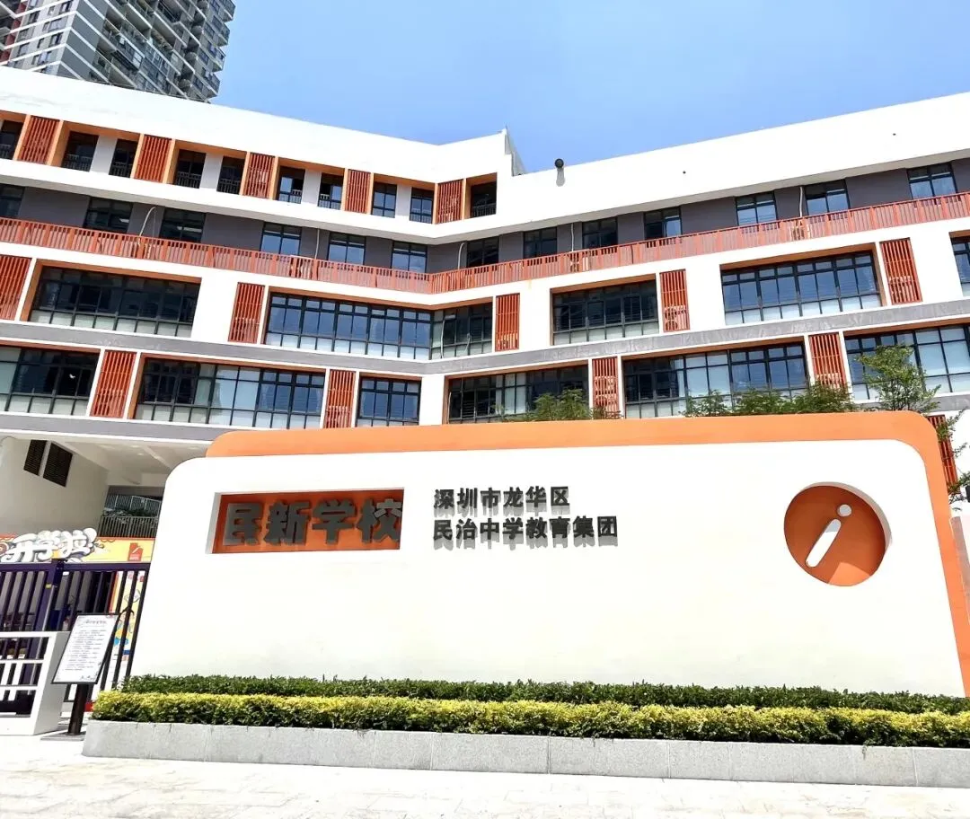 民新学校是龙华区政府高标准打造的一所面向未来、具有创美创新典范的九年一贯制公办学校,创办于2020年9月,校园占地面积约21166平方米,现有59个教学班,学生2769人,教职工198人。学校地处深圳中轴核心片区,毗邻深圳市美术馆、深圳市图书馆、开心麻花剧场和深圳北站,交通便利,独具现代都市文艺气质。