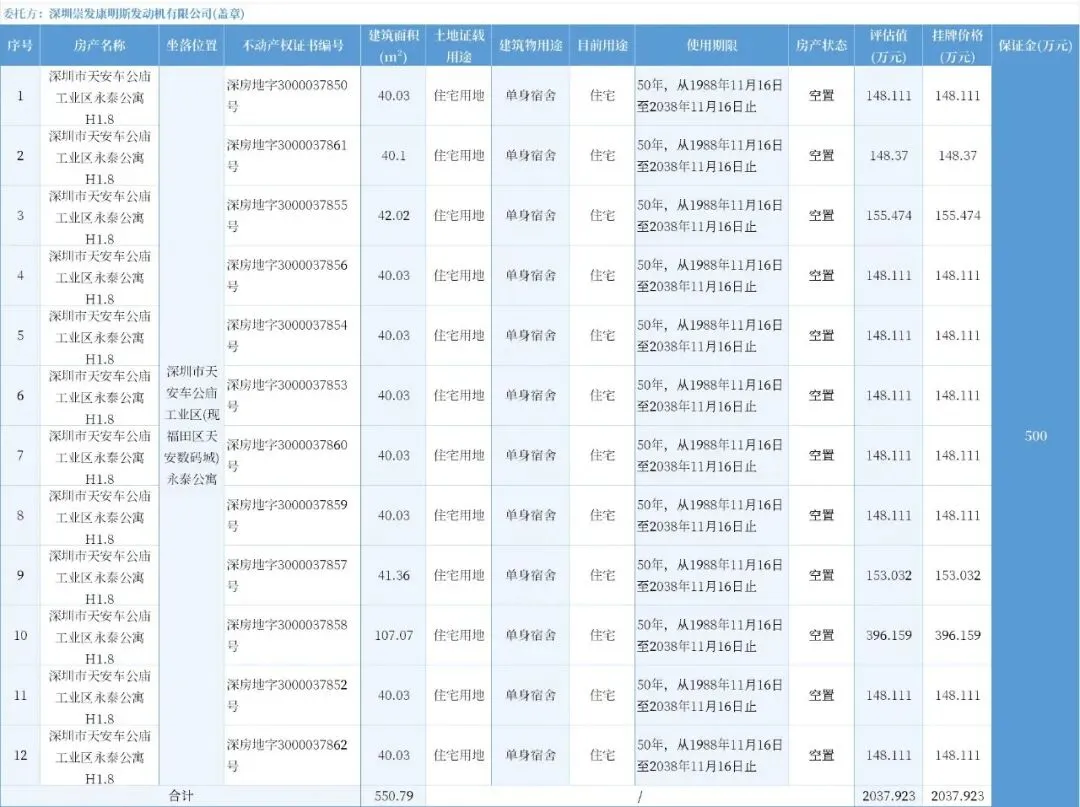 深圳市福田区天安数码城天展大厦、永泰公寓12套房产转让