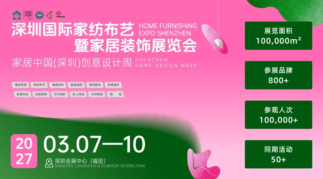2026年3月7日-10号,深圳福田会展中心,2026(春)深圳家纺家居展以“融萃万象”为引,铺展10万平米美学图卷,汇聚近千品牌、近10万专业客商,40余场思想交锋点燃行业变革之火。