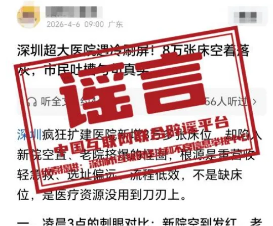网传“深圳超大医院遇冷、八万床位空置”不实(2026·04·08)