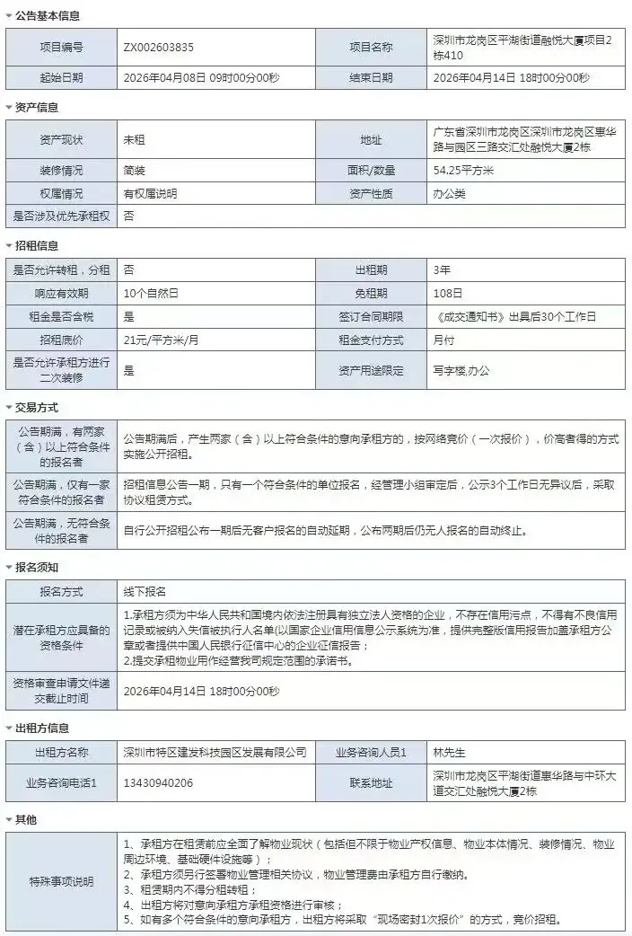 当前位置:首页>深圳>深圳市龙岗区融悦大厦2栋410号房物业招租信息公告