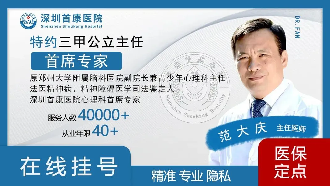 >深圳首康心理科4月9日北京中医药大学深圳医院心理科特聘专家王桂芳主任出诊和原郑州大学附属脑科医院副院长范大庆首席专家出诊